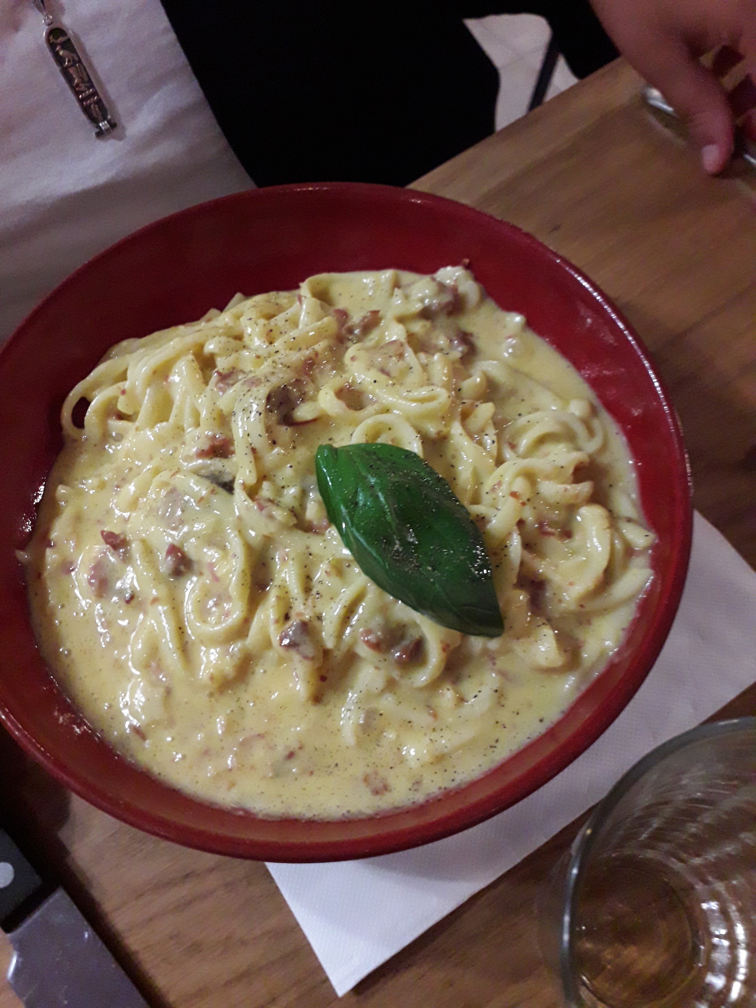 Vraiment déçu. Voici les deux mots qui résument mon expérience dans ce restaurant… J’ai pris des pâtes à la carbonara en pensant que je ne pourrais pas être déçu, et bien c’est raté. Sans mentir elles font parties des pires pâtes carbonara que j’ai pu manger dans des restaurants… J’avais entendu du bien de ce restaurant mais il faut croire que je n’ai pas eu de chance. C’est dommage car la serveur qui s’est occupée de nous était très gentille.