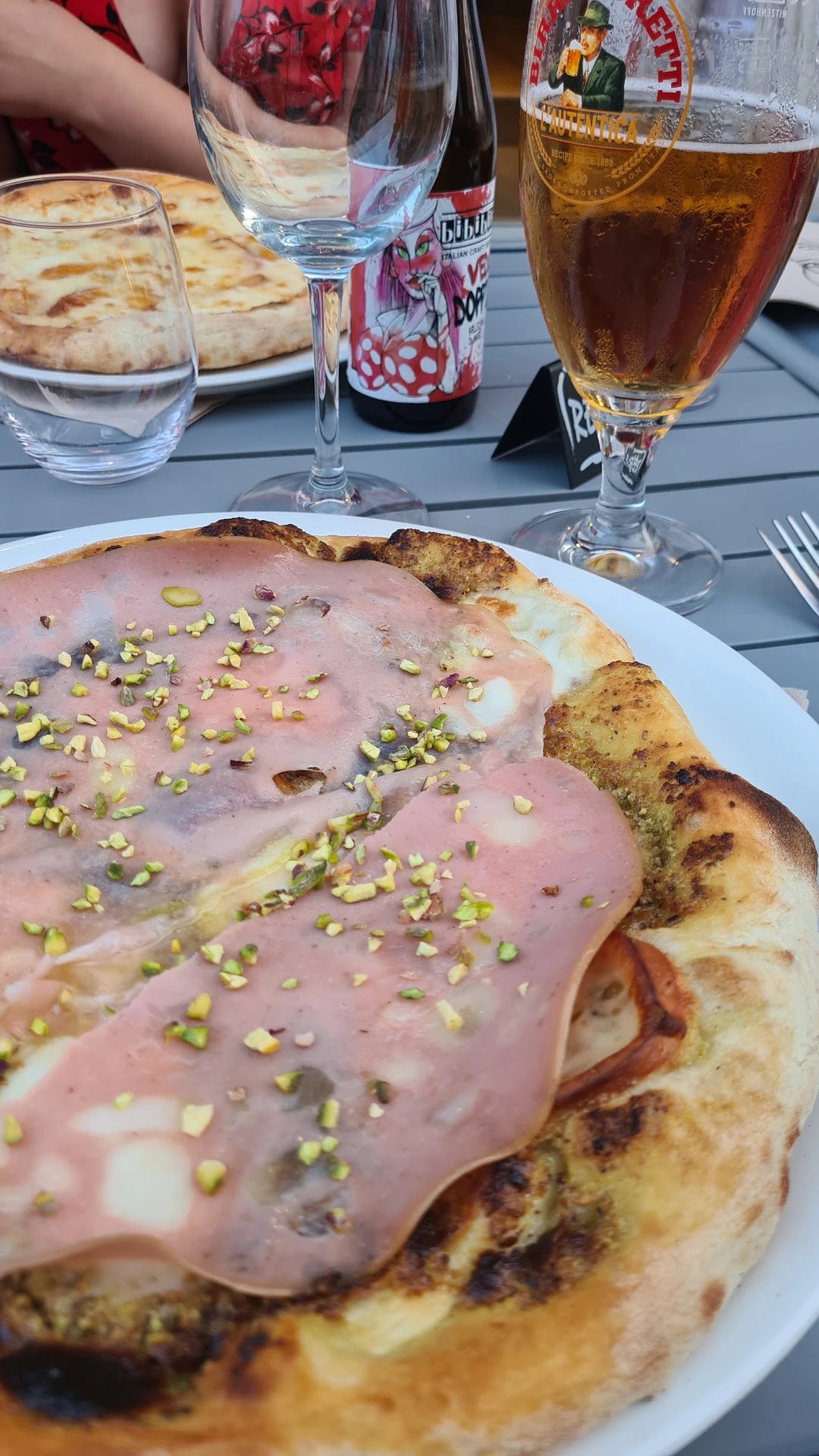 Un lieu simple, mais des plats et pizzas très très bon et bonnes. Des vins aussi très agréables en bouche.
