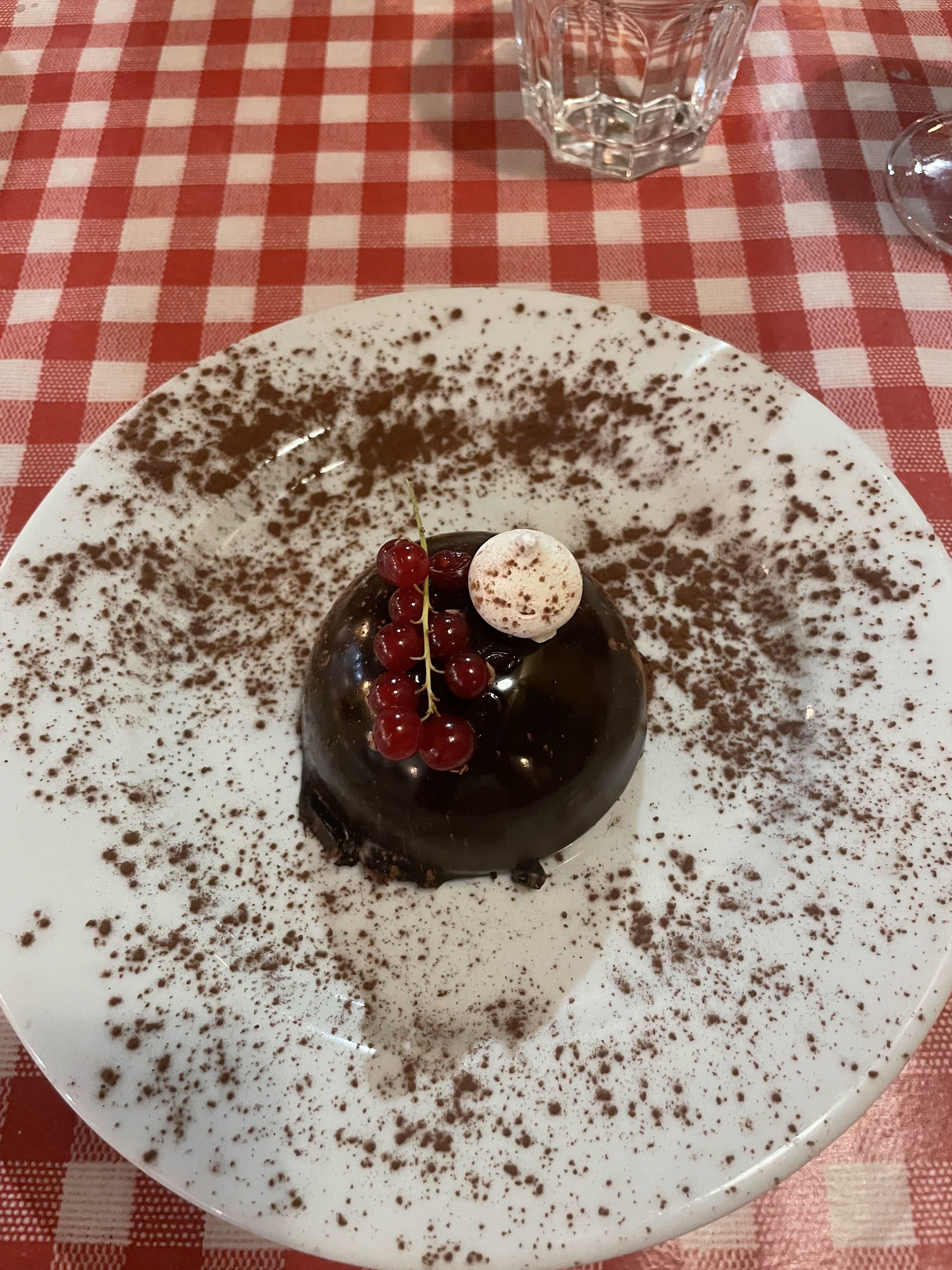 Nous avons mangé dans ce joli restaurant décoré de légumes d’été. Une cuisine fait de produits frais et du moment. Je recommande.