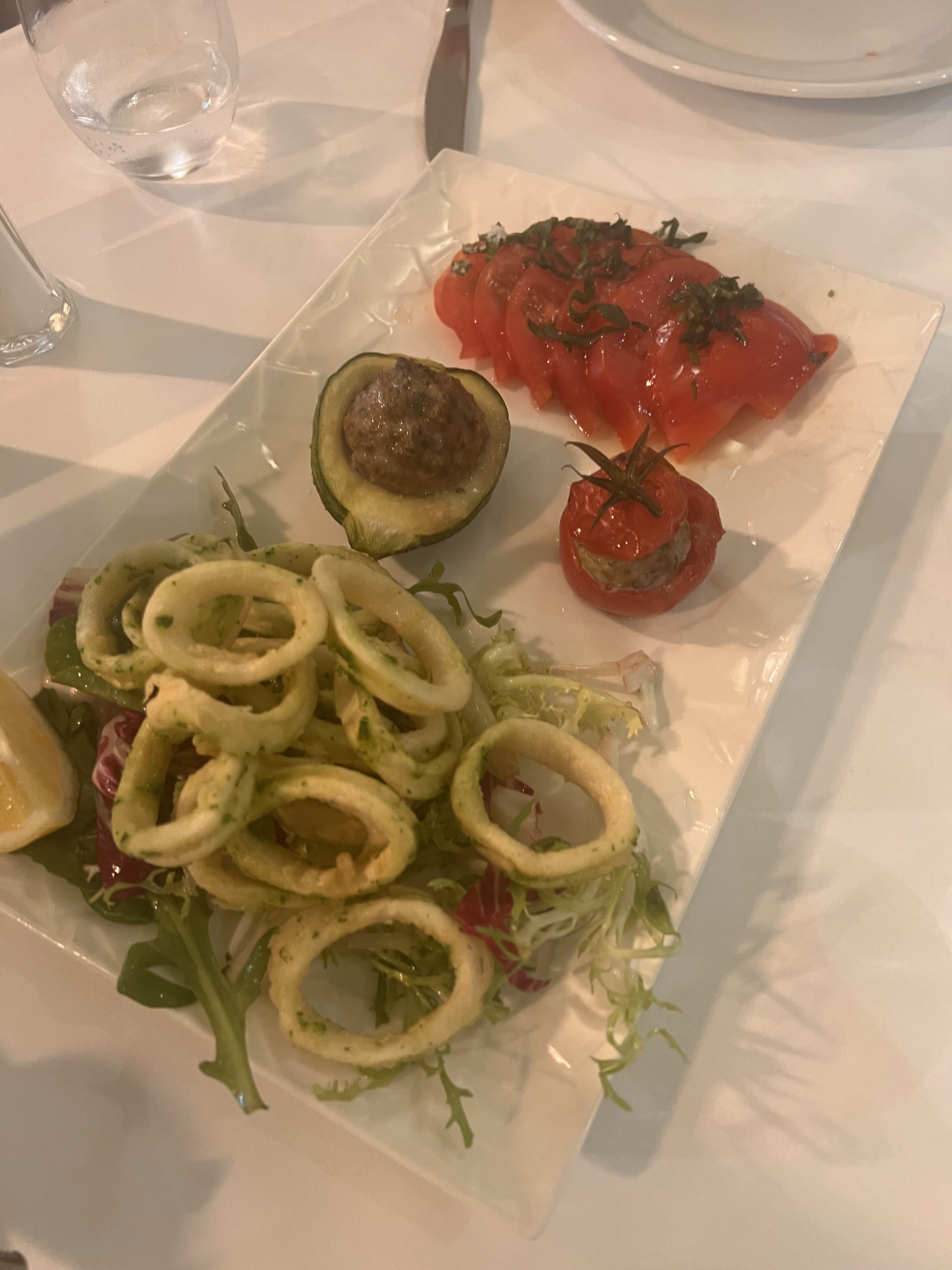Le prix est définitivement trop élevé pour la qualité de la nourriture, les calamars n'étaient que tièdes et très durs. Très mal assaisonné, pas un bon rapport qualité prix, je ne le recommanderais pas. Cependant, le service était sympathique et le pain et la salade étaient également délicieux.