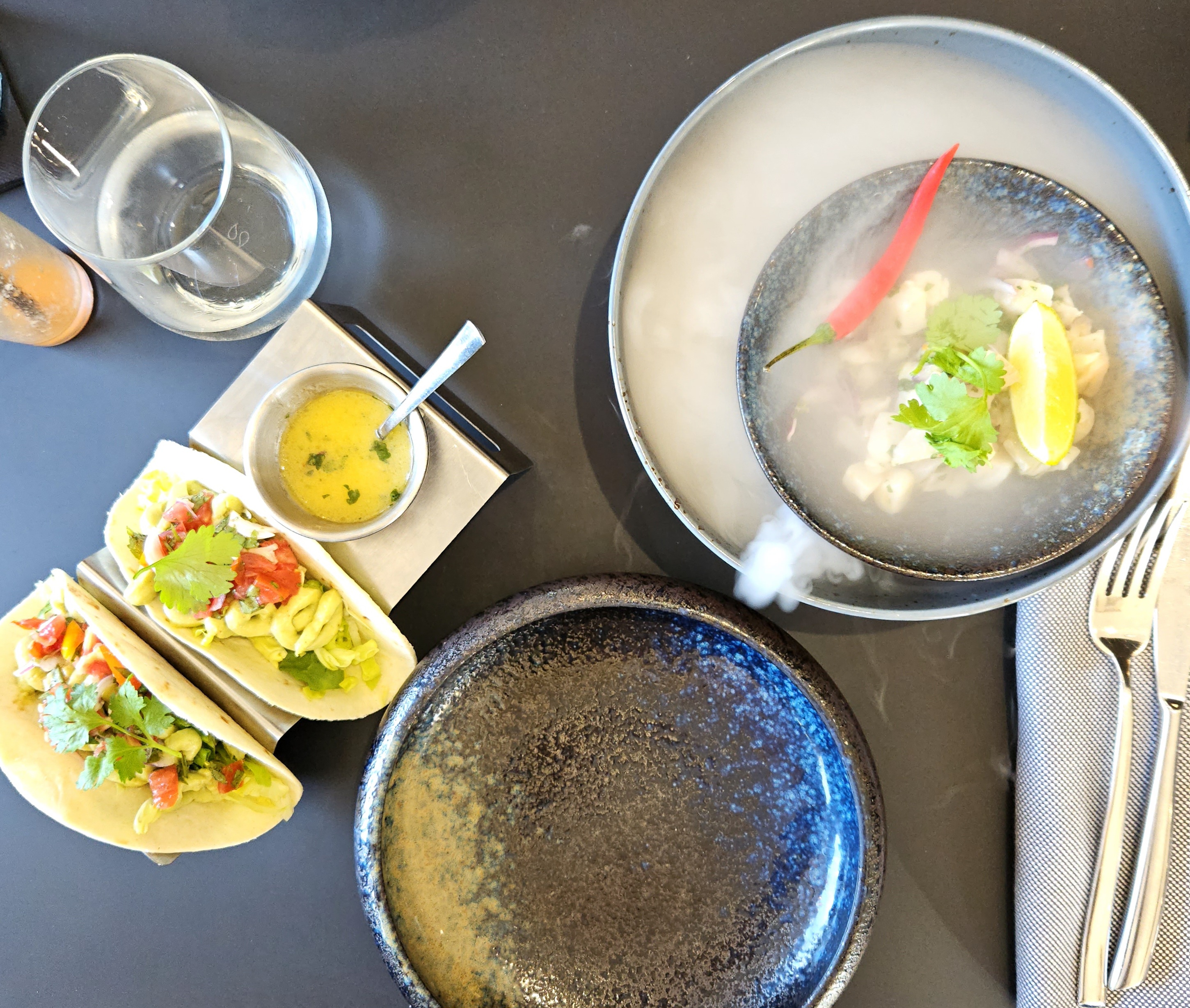 Pas beaucoup de choix un soir de semaine à La Seyne s/Mer mais pas d’hésitation : Don Papé, restaurant de l’Hotel Mercure sur le port est une super adresse. Accueil et service parfait 👏 Cuisine excellente, originale et parfaitement maîtrisée. Ceviche de Loup accompagné de tacos, délicieux, frais et bien copieux pour une entrée.