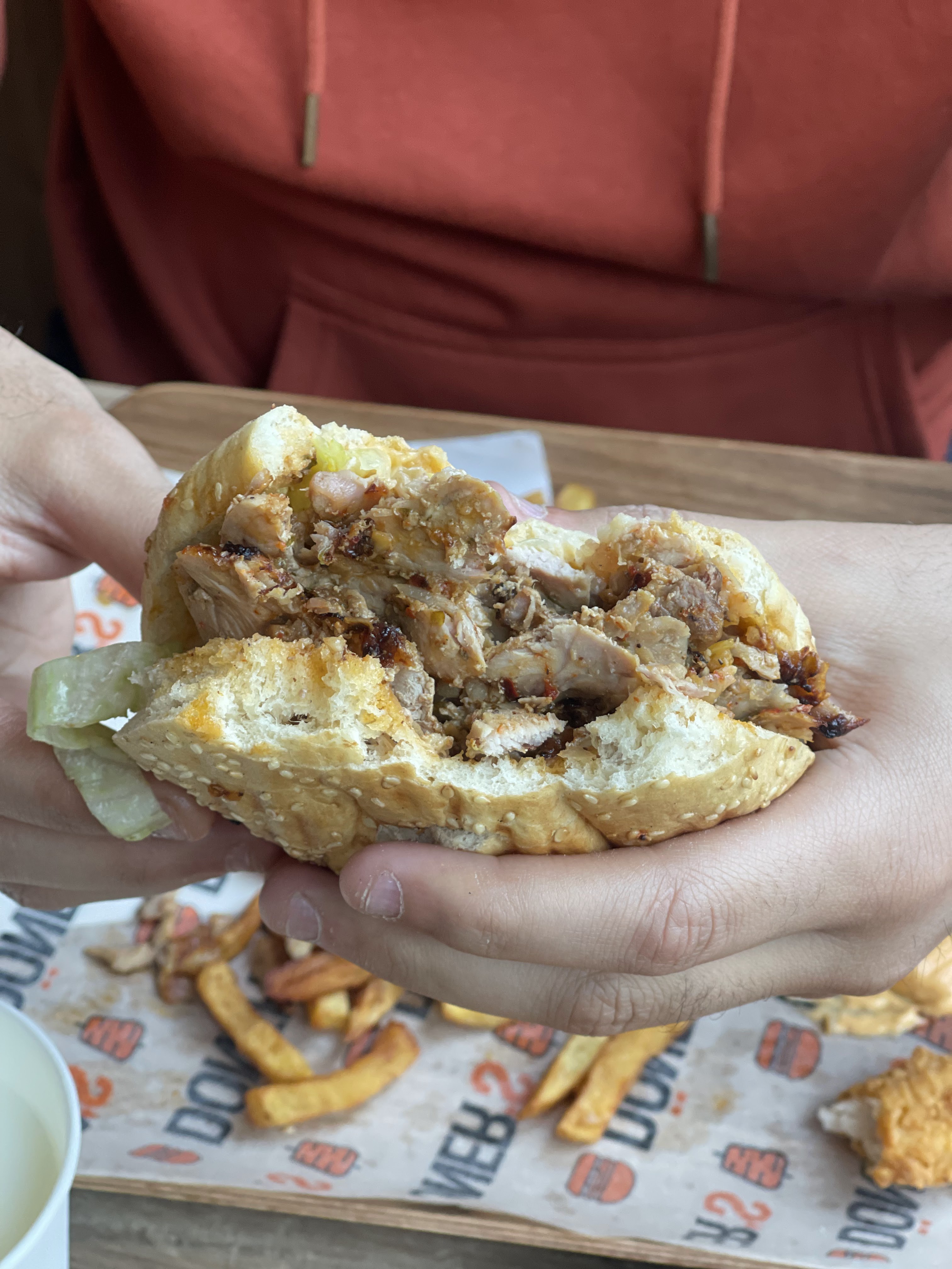 J'ai passé une commande sur ubereats, j'ai précisé de bien cuire la viande et j'ai eu une brochette de poulet rose très peu cuite. Du coup j'ai pas mangé le sandwich. Merci de faire attention la prochaine fois aux précisons que le client indique! Deux étoiles pour les frittes étaient bonnes.