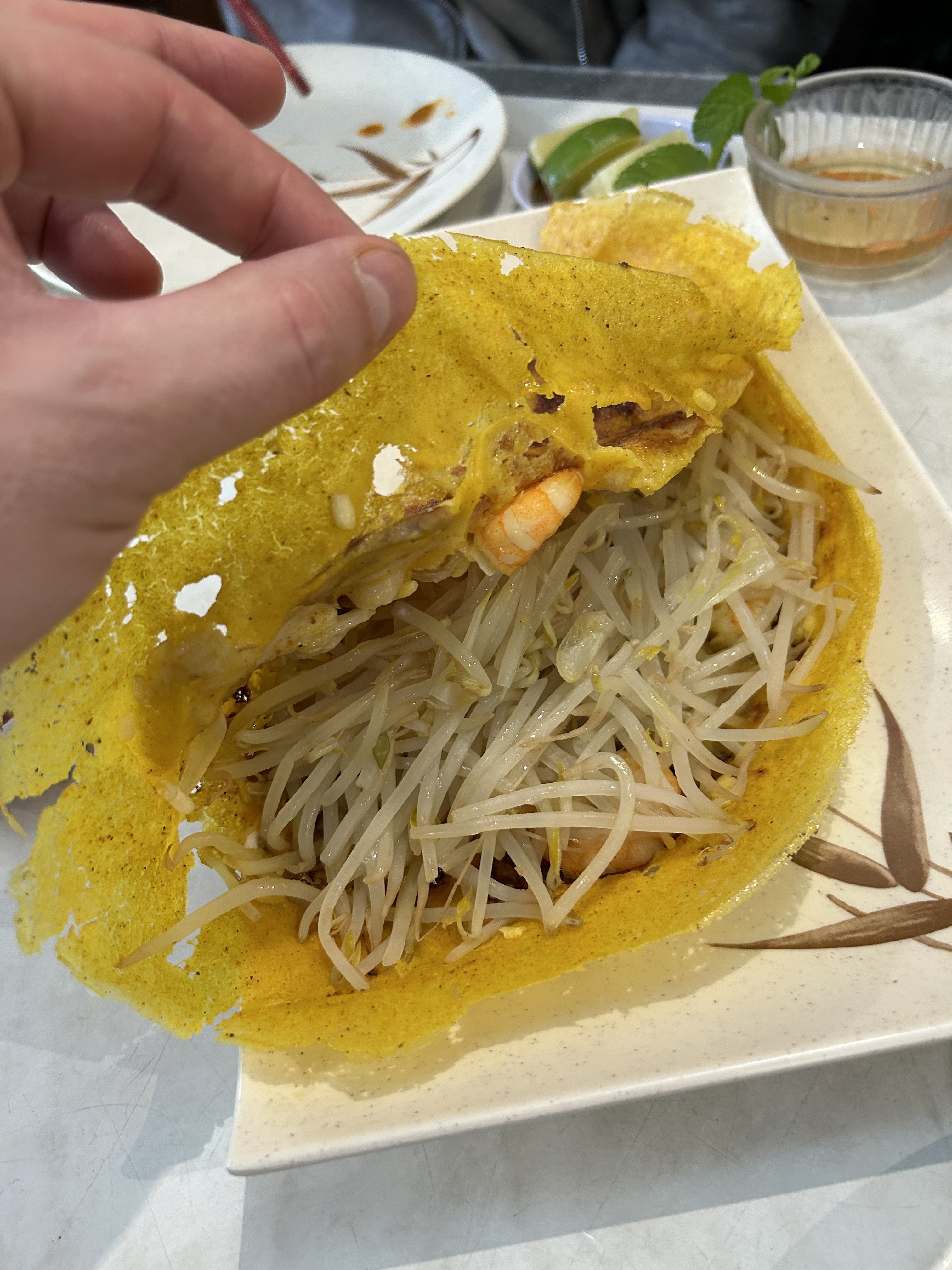 Alors, vu la note du restau et que je l’ai trouvé sur une reco insta, je m’attendais à une dinguerie… Quelle fut ma déception 😟 Franchement, c’est un restau très banal voir moyen et donc, rien de fou. Les nems étais bon, on a testé une spécialité vietnamienne sur la carte, la crêpe, elle n’était pas bonne du tout ! Et le pho était vraiment moyen… Je vois que le restau a une très bonne note sur Google donc je me demande : - soit on a pas eu de chance et le restau est bien - soit vous avez tous des palais de dobermann et le restau est très moyen et ne mérite pas sa note >4 étoiles !