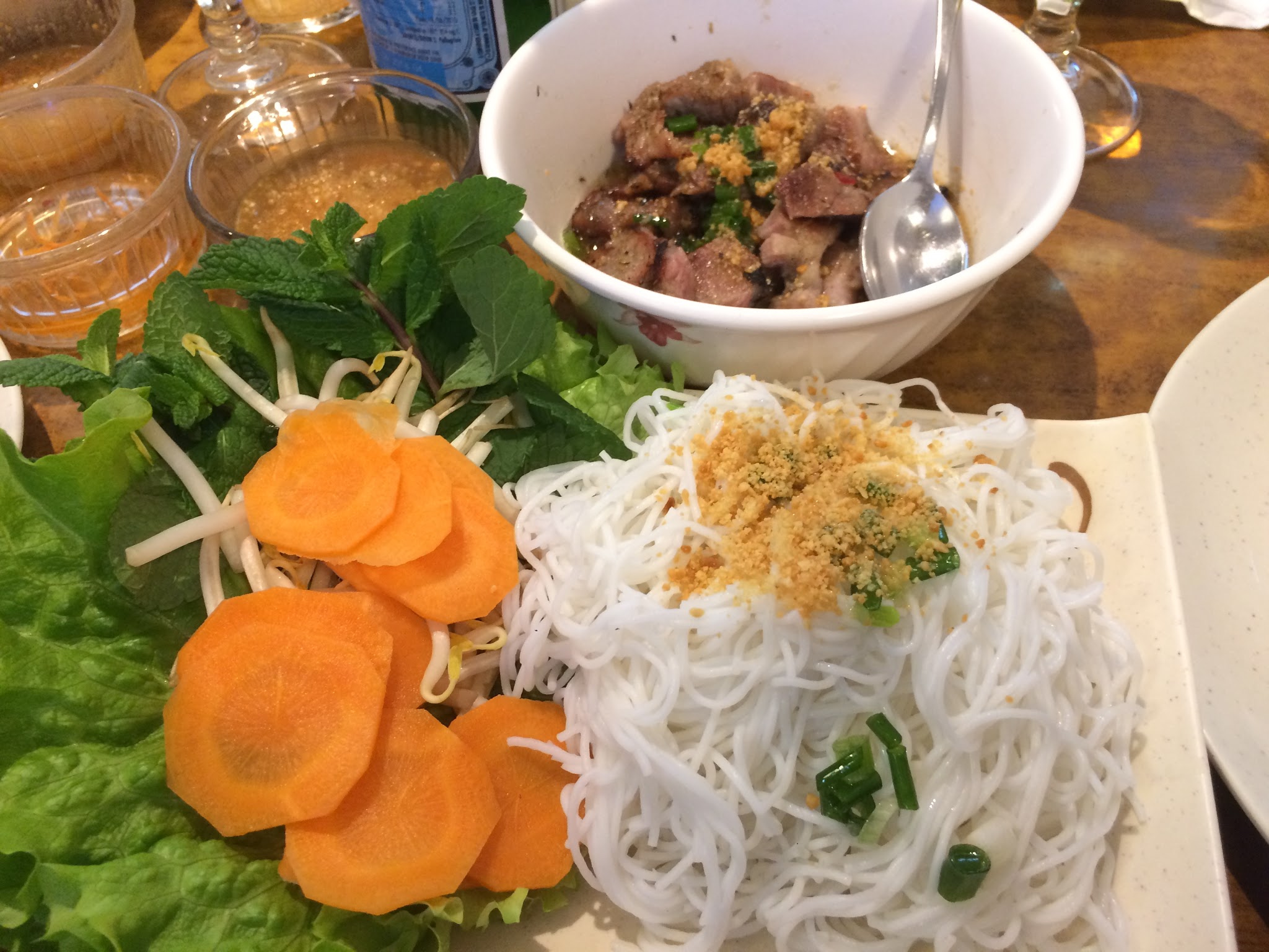 Bobun plutôt bon même bien que les nems étaient trop cuits Par contre la crêpe crevettes/porc non, c’est vraiment immangeable