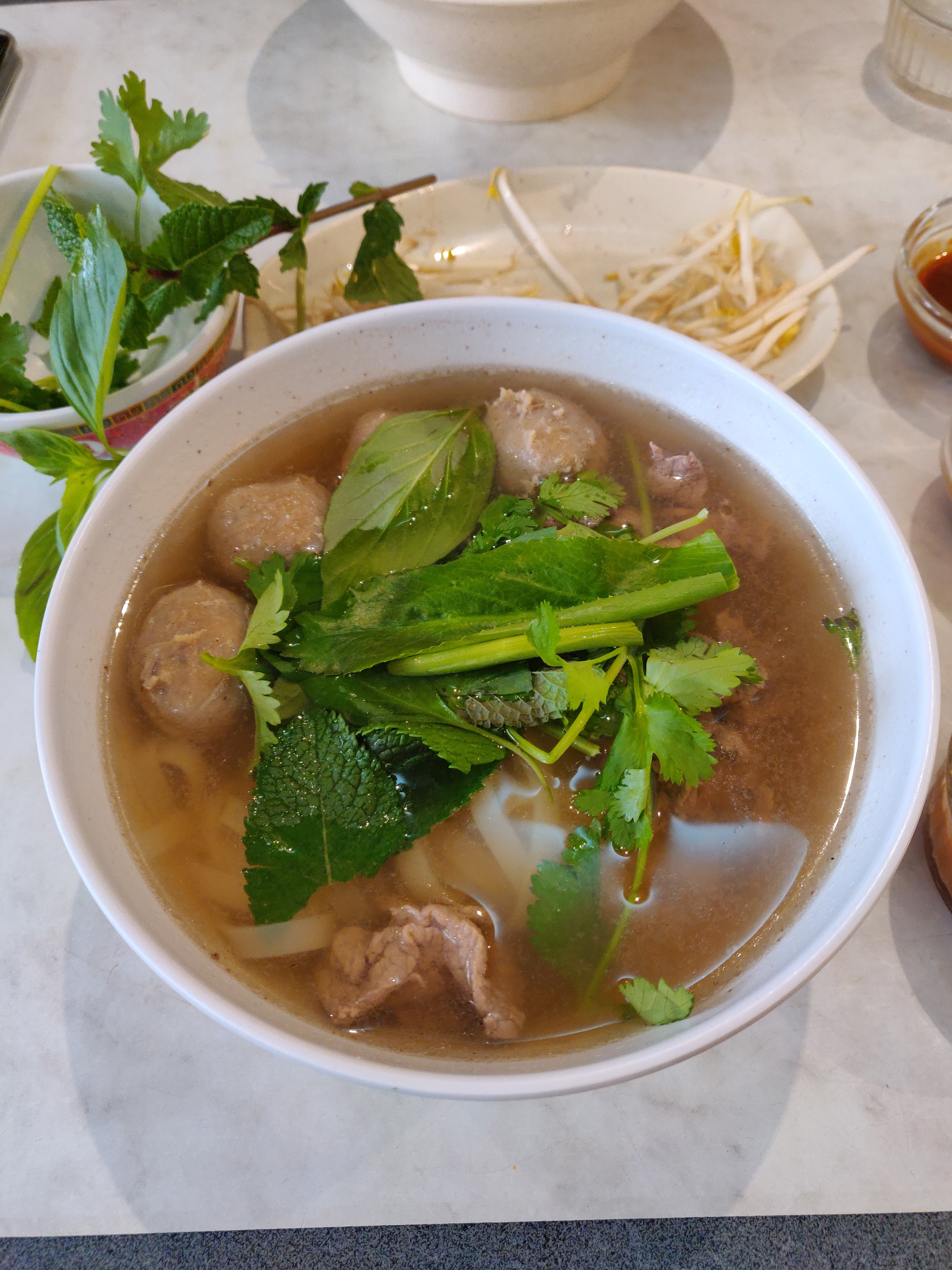 Si vous voulez payer 14€ pour un grand pho et avoir encore faim. J'ai un petit appétit normalement et pourtant j'avais encore faim. La portion est vraiment ridicule, il y a beaucoup de bouillon pour très peu de nouilles. De plus, les boulettes sont extrêmement dures. J'ai pris un pho saté, on sent à peine le saté... J’avais l’habitude de venir manger chez eux, mais là je suis vraiment déçue. C’était meilleur avant, de plus les prix ont énormément augmenté.
