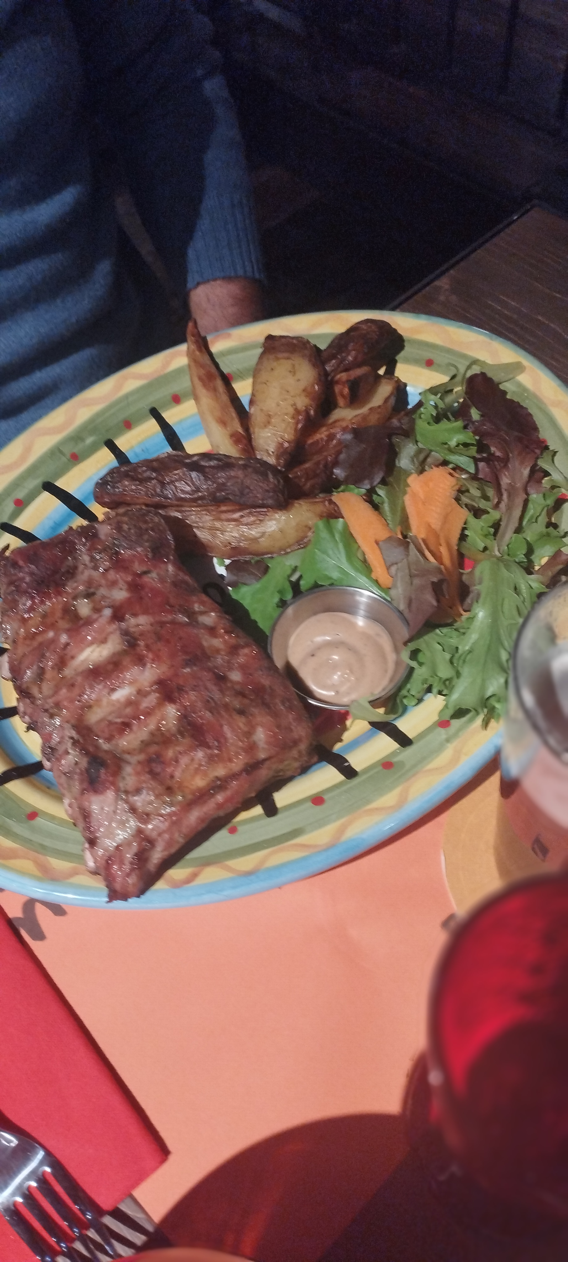 Plusieurs salles aux décorations différentes et très colorées. Le service est parfait avec compétence et sourires. Les plats sont copieux et d'un très bon rapport qualité prix. Le choix est varié, grillades, pizza, burgers... Il reste à améliorer les abords du restaurant, trop de poubelles visibles et le parcours parking entrée pas très glamour.