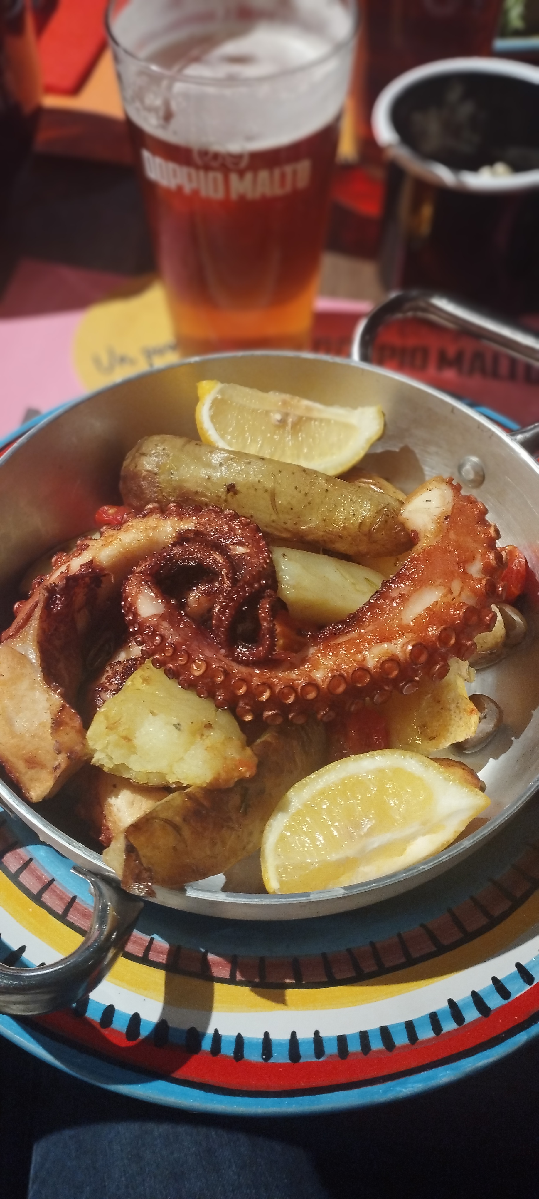 Bon moment passé chez Doppio Malto , une assiette de pâtes bolo pour ma part. Le poulet est énorme et bien cuit. Bière de bonne facture Nombreux jeux , belle.deco parking gratuit. Personnels sympathique et accueillant.