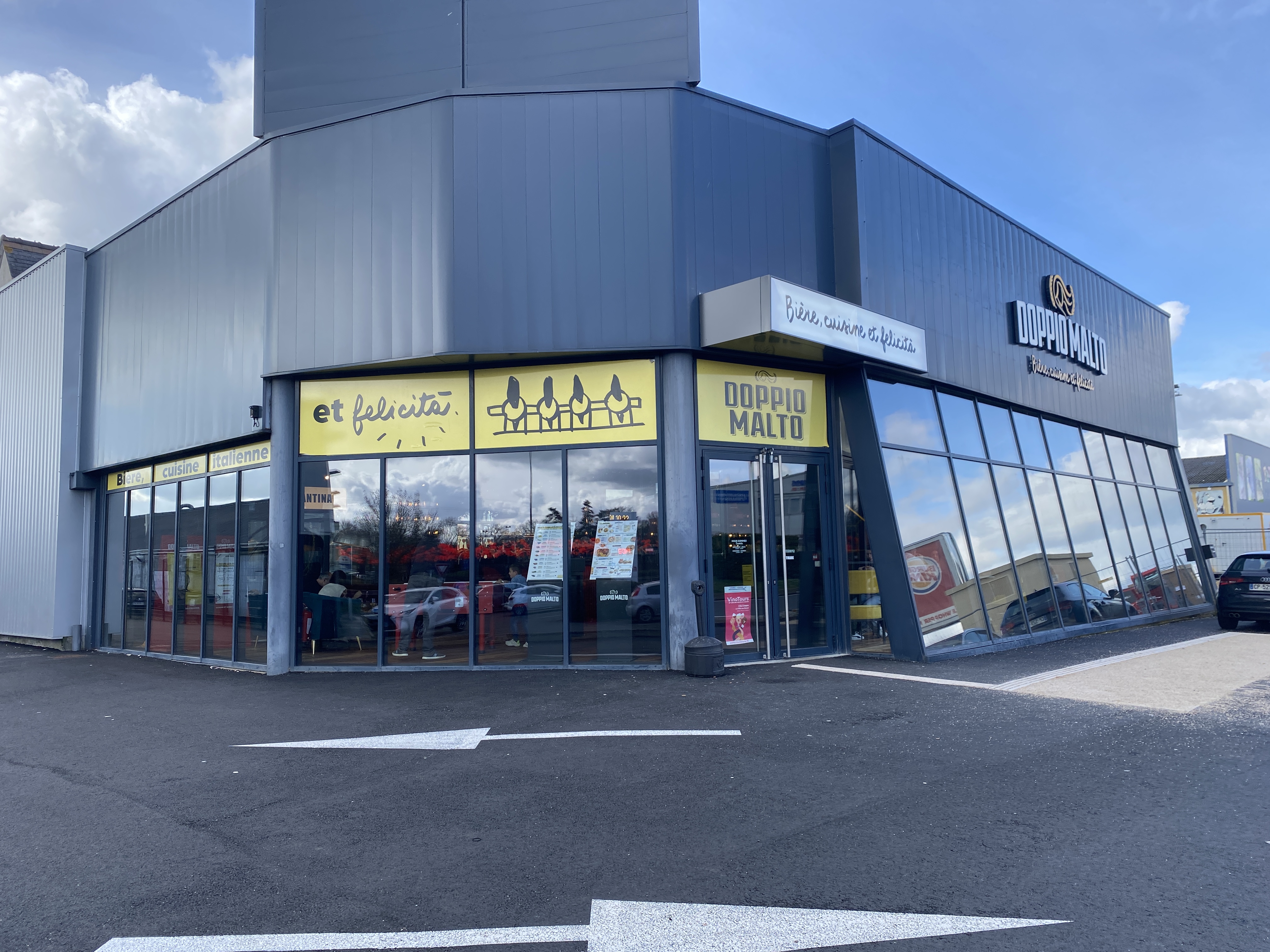 Doppio Malto, qui vient d'ouvrir à Chambray les Tours, est un endroit chaleureux, où l'on peut venir boire une bière ou un cocktail, qui sont par ailleurs excellents, et où on aura forcément envie de rester pour dîner après avoir parcouru la carte, composée de plats italiens qui s'avèrent être délicieux. Le service est agréable, rapide et efficace, le personnel souriant et réactif. La décoration est originale sans être clinquante, l'ambiance musicale sympathique, et cerise sur le gâteau, tout a été pensé pour que les enfants puissent s'amuser pendant que les parents prennent un verre : fléchettes, pétanque, baby-foot, billard, panier de basket, table de ping-pong, puissance 4 géant, tout y est pour que chacun profite, dans une ambiance calme et sereine. L'accès est simple et le parking est grand, aucun souci pour se garer. Je recommande vivement d'aller faire un tour dans ce nouvel établissement qui inaugure un concept encore absent sur Tours et son agglo. Bravo et bon courage à toute l'équipe pour cette ouverture, je reviendrai très vite c'est sûr !