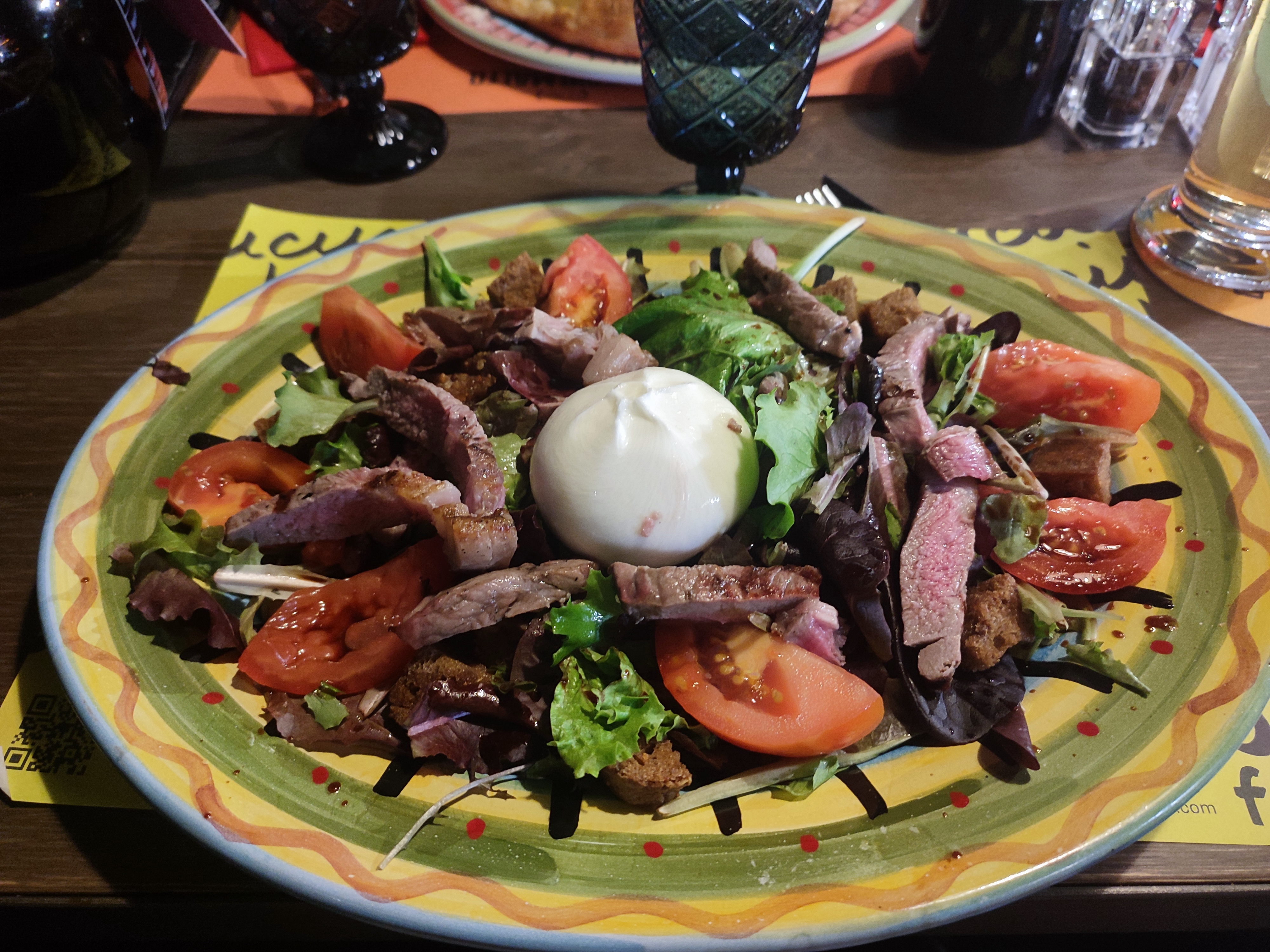 Cadre sympa et atypique. Accueil courtois. Salade salmon 17,80€ (bcp TROP de vert, de croûtons, et très peu de saumon, moins rentable..). Brace mista 24.90/Pers. Plats de viandes barbecue, pdt, salade, sauce. Excessif rapport qualité/prix, déçus. 1 verre de vin. Pas de dessert. Note 75e pour 3 Venus par curiosité. On a vu, essayé, mais nous ne renouvellerons pas l'expérience.