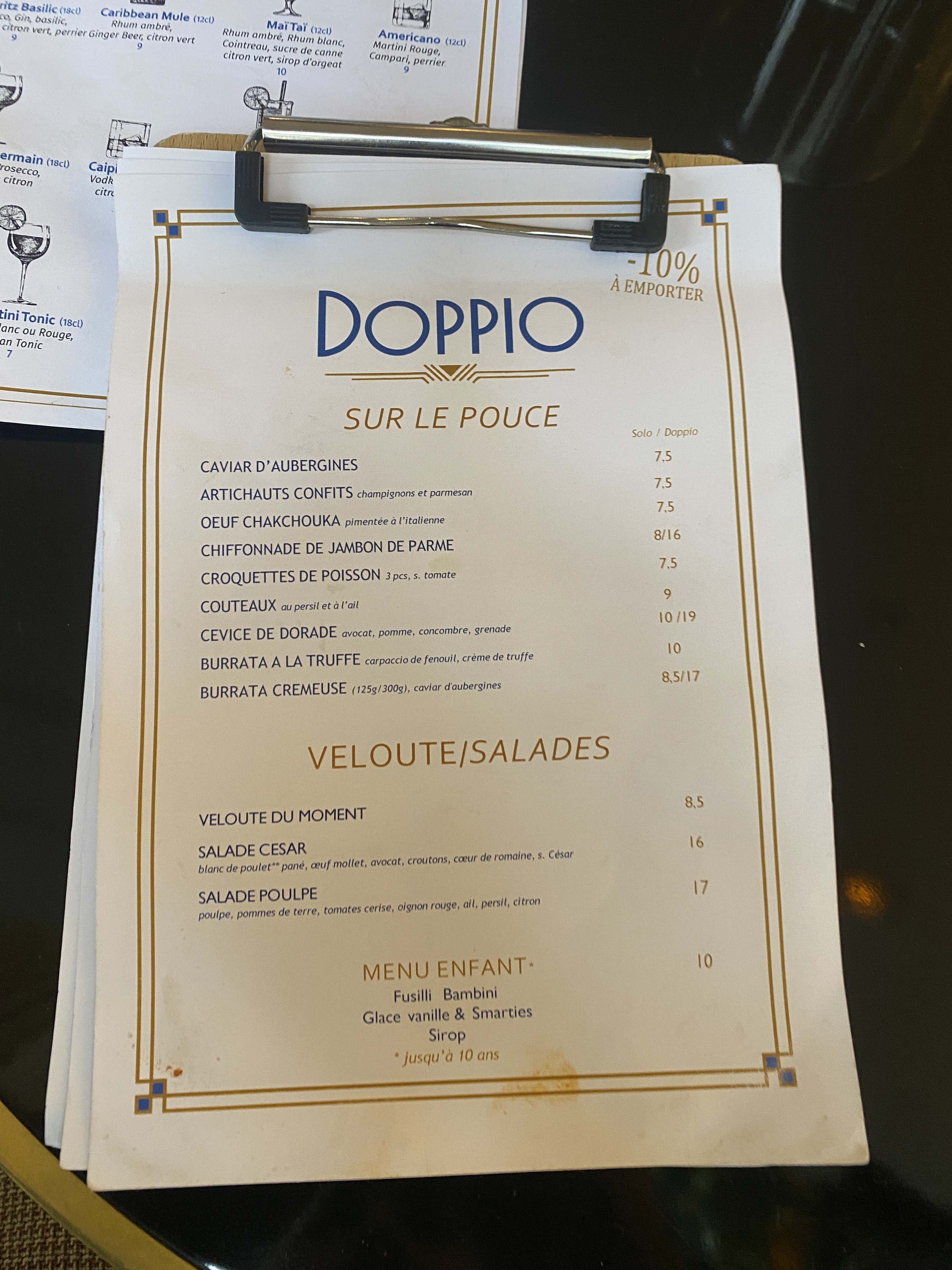 Super antipasti et plats délicieux : n’hésitez pas une seule seconde à faire un tour chez Doppio. Très agréable de s’y poser, pas encore surpeuplé en plus et ça fait du bien !