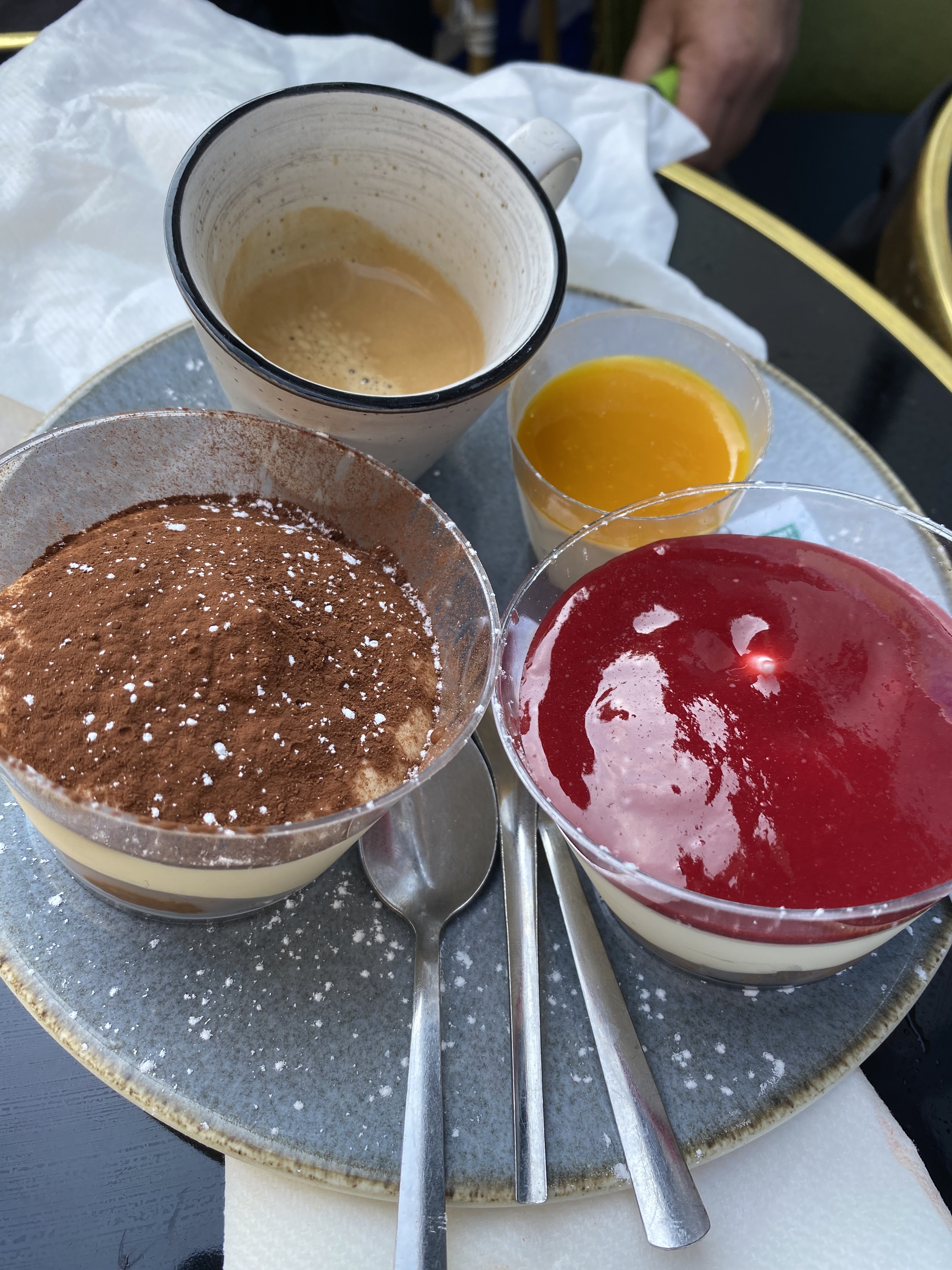 Cadre agréable et serveurs sympathiques, on s’étonne cela dit des excellentes notes trouvées sur Google : le café gourmand était composé de ramequins en plastique tout droit sortis des célèbres grossistes de la restauration ( d’ailleurs aucun ne correspondait à ce qui avait été annoncé), les plats de pâtes étaient bien présentés mais de qualité moyenne.