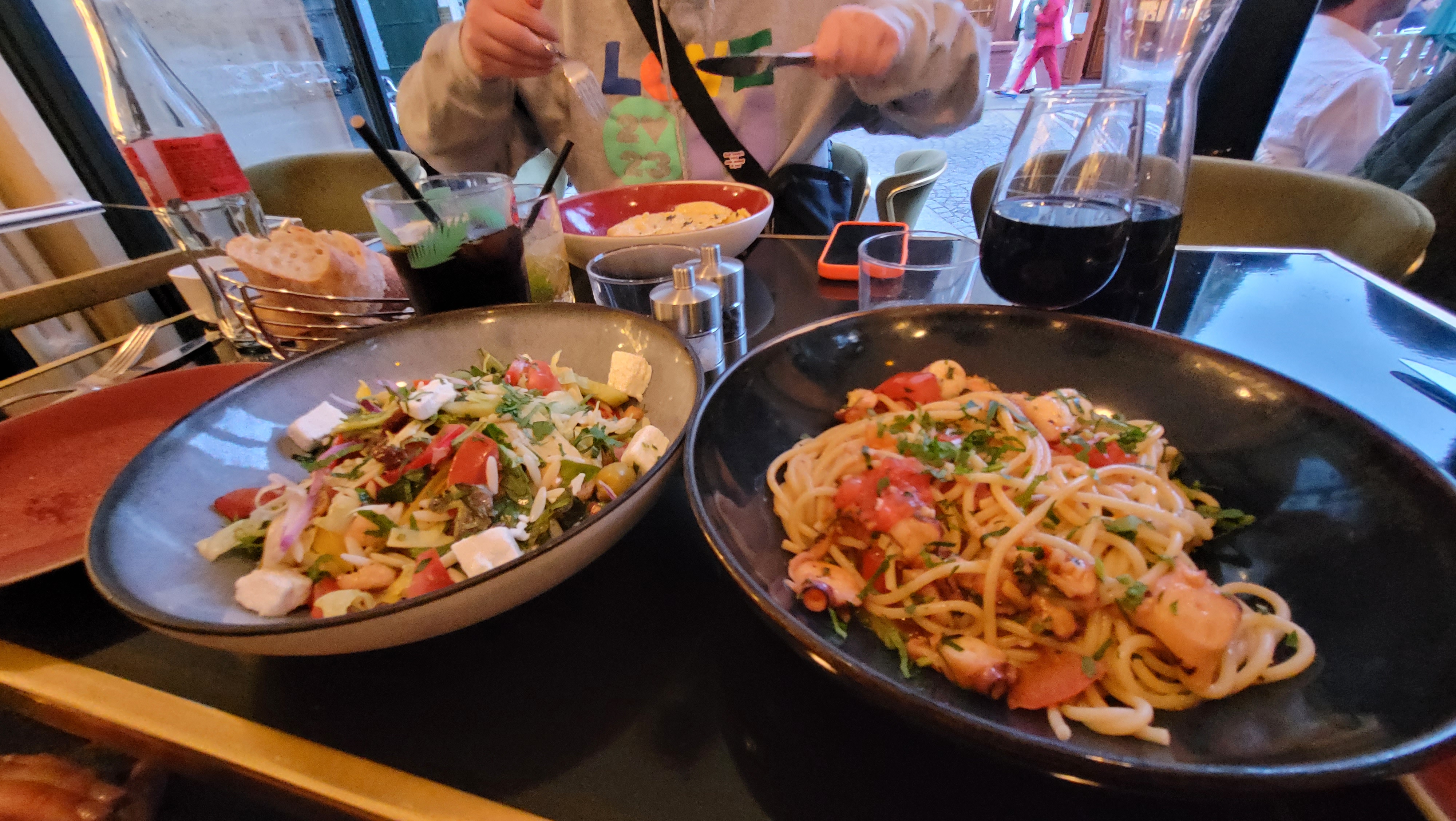 Excellent accueil. Des superbes pâtes. (Fusilli Norma et Mezzelune au chèvre). Un Valpolicella de bon augure. N’hésitez pas, allez-y, nous on reviendra… (et vraiment raisonnable en prix).