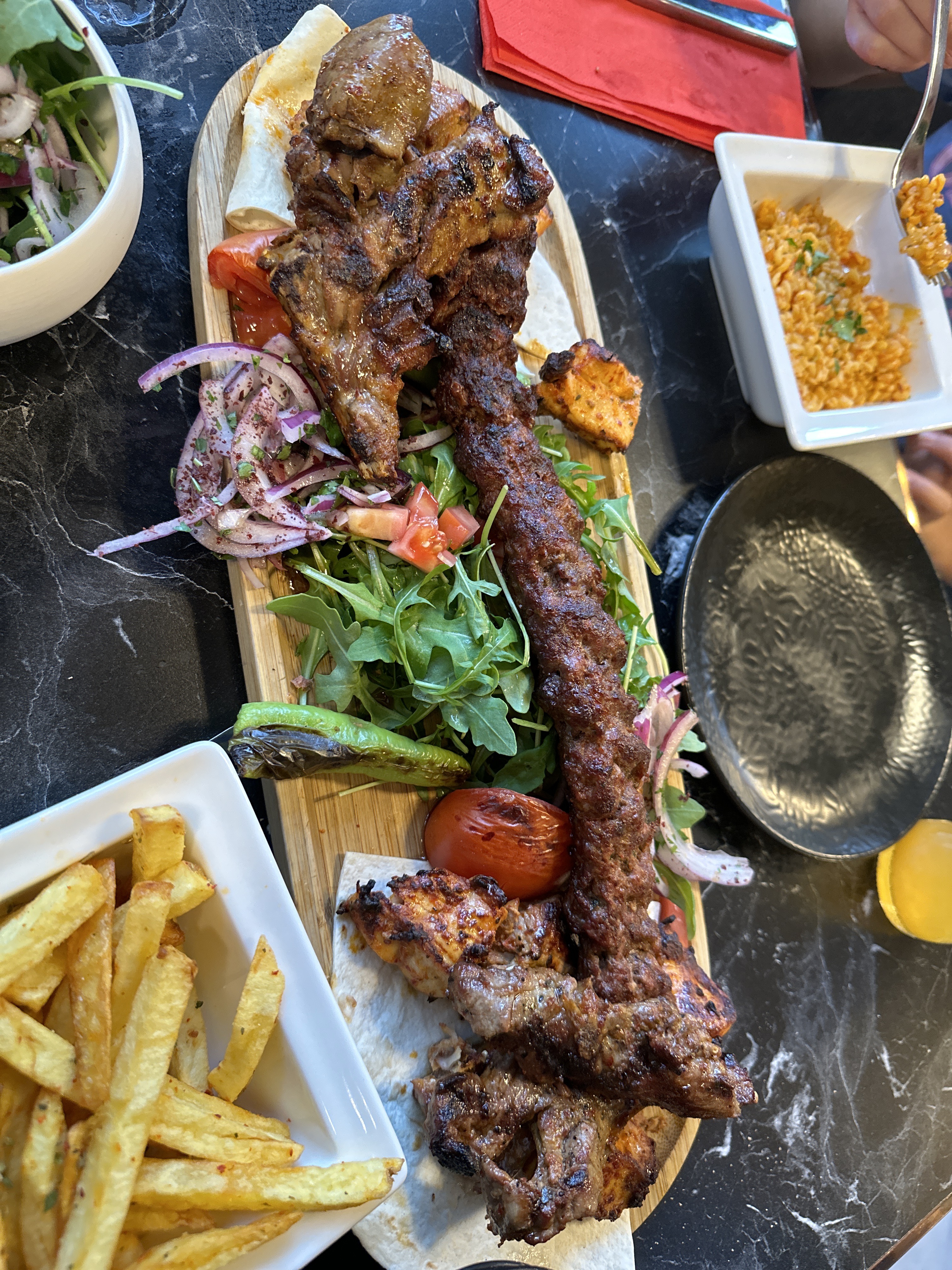 Mon restau préféré à Panam. Quand je veux manger de la bonne viande au barbecue et qui plus est halal 🔥 J’ai pris mixte pour 2 personnes Adana, brochettes poulet, brochette agneau et côtelettes d’agneau UNE DINGUERIE UNE FRAPPE La prochaine fois je prends juste les côtelettes J’ai jamais mangé de côtelettes aussi bonnes de toute ma vie Juste petit bémol mais je pense vous pouvez l’améliorer, c’est les accompagnements Vous pourriez largement faire mieux ! A part ce détail, rien à redire Si je pouvais vous mettre 6 étoiles je l’aurais fait