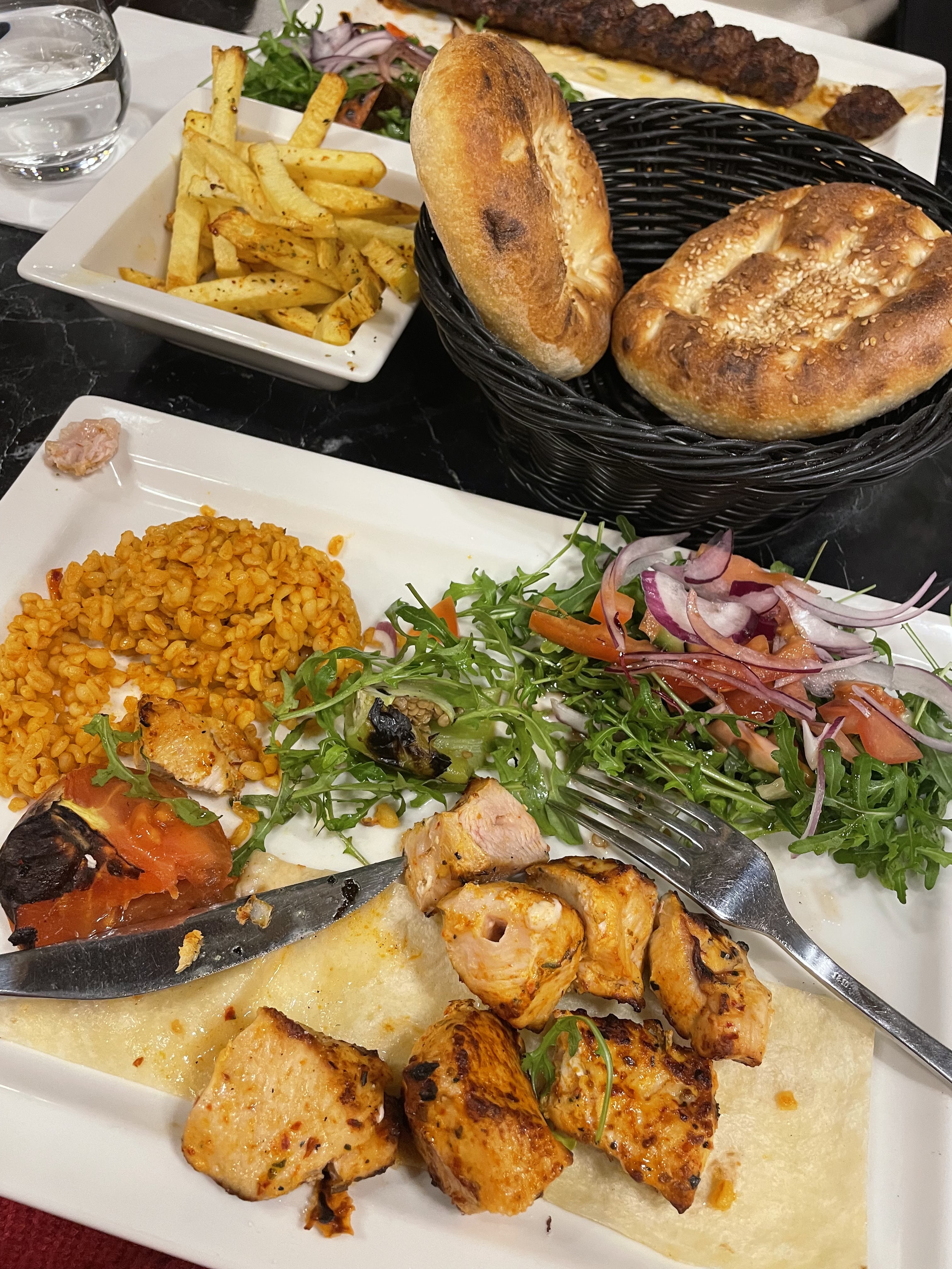 Accueil et service très inquiétant et décevant, j’ai du toute demander moi même. La carte au bout de 10 minutes, les repas 30 minutes d’attente. On nous a gaver de pain alors que le restaurant n’étais pas pleins. Le pain était excellant au passage. Dommage qu’il n’y avait rien à picorer avec. 10 minutes pour l’addition, sans blague j’ai du tout demander moi même. Cependant,a qualité des produits était présente même si des quantités légères et des prix élever. Un adana, simple pas très attirant en présentation mais bon au goût. Un iskender, sans goût et petit pour un grand mangeur. La sorte de petit pain en dessous de la viande super bon une première sous cette forme là je valide. Pour finir mon préférer, un beyti kebbab belle présentation, original je recommande ++. La petite salade, le blé en accompagnement passe bien, les frites maison pas top (froide), et la purée a la truffe tout simplement magnifique dommage qu’il y avait pas plus. Plus que déçu par l’accueil, et mitigé pour les plats.