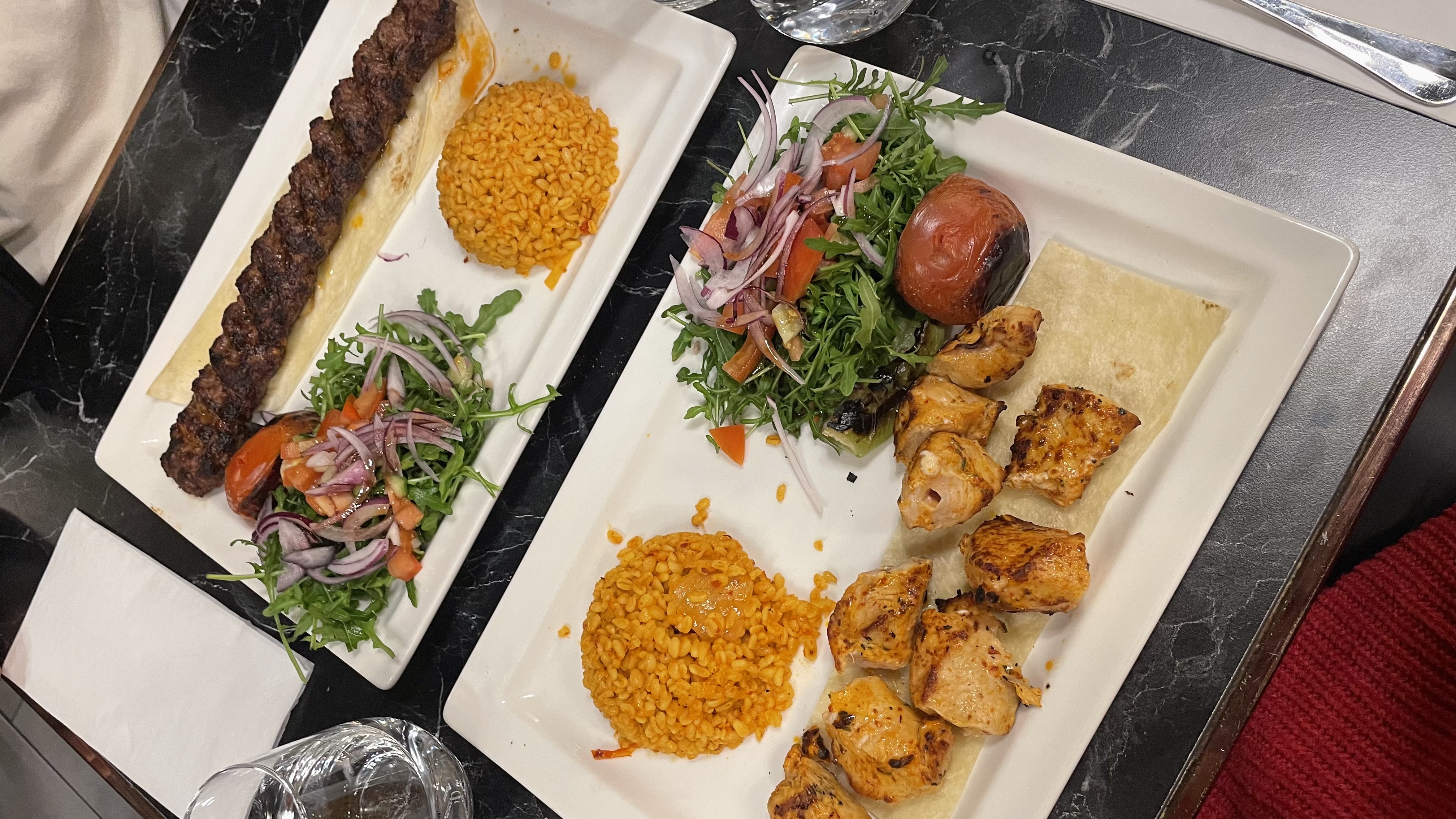 Bon mais quelques points à améliorer. Ça reste cher pour de la grillade avec accompagnement qu'on peut également trouver dans un kebab classique. Pour une brochette adana comptez 17,50€, pour une grillade mixte 25€. Points à améliorer : les frites sont sèches, le blé pareil. Points forts : les champignons excellents, le pain est très bon. Accueil et service corrects.