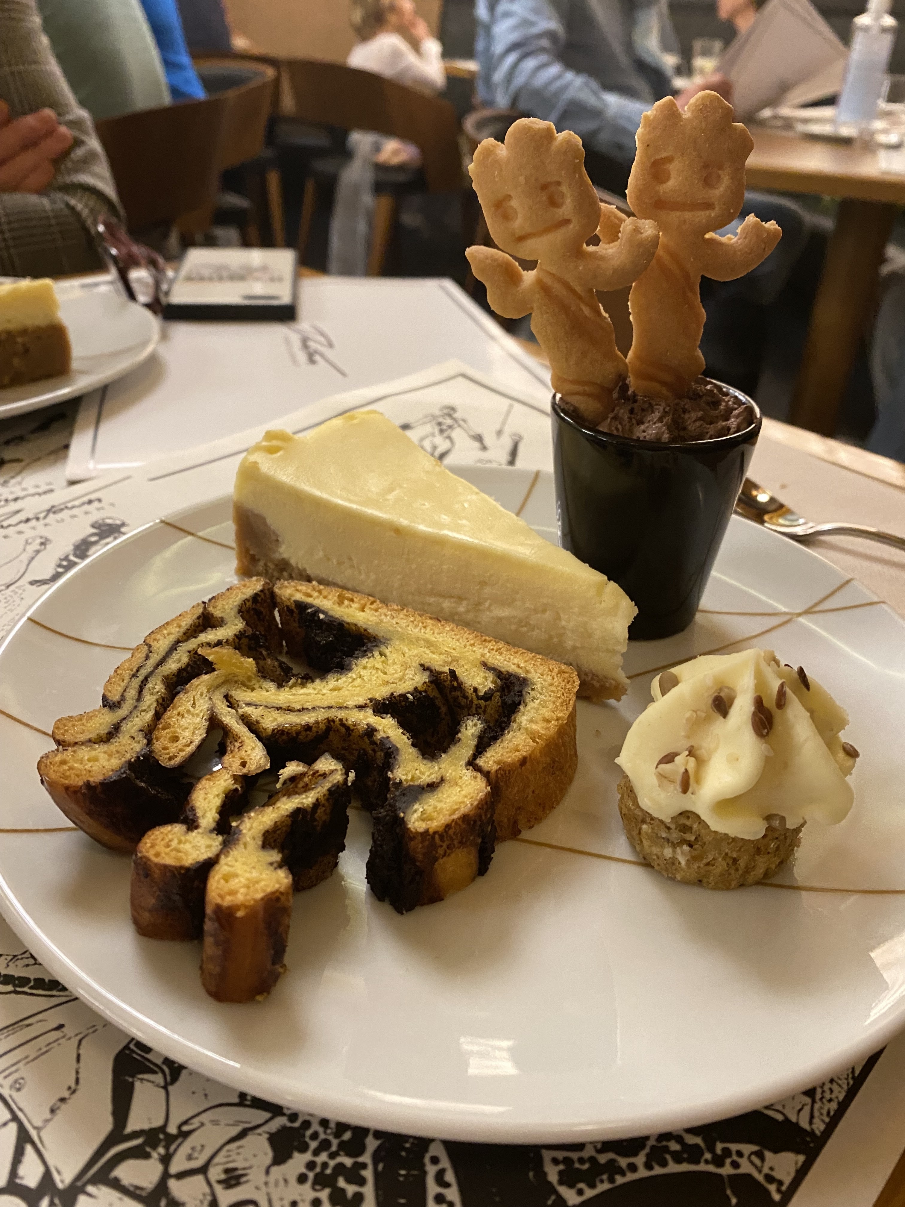 Une vraie bonne surprise !! J'y suis allée pour mon fils, plus pour le décor que pour le buffet. Je ne suis pas difficile donc je savais que je pourrai manger mais en le lisant, le menu ne m'avait pas particulièrement inspiré. Arrivé sur place, tout donne envie, un coup de foudre en particulier pour le burger vegan, il est a tomber !!! Tout est très bon, il y a du choix, peut-être un léger bémol pour les enfants, il manque quelques basics simple pour que le repas soient équilibré , bâtonnets de carottes ou tomates cerises, quelque chose de ce genre là. Il y a des légumes mais avec un enfant de 6 ans les assaisonnements sont parfois un peu trop élaborés. La salade Waldorf est génial par exemple mais dès qu'il a vu le raisin dans la salade... 🤦. C'est tellement plus simple quand il sont bébé et mangent tout ce qu'on leurs donne sans se poser de question 😂😂😂. Bref, un buffet varié, autant de chaud que de froid, les desserts sont WOW aussi beaux que bon (mention spéciale pour le carotte cake 😍😍😍). Un peu cher mais vaut sérieusement le détour !! Petit conseil, réservez avant, il est vite complet !!