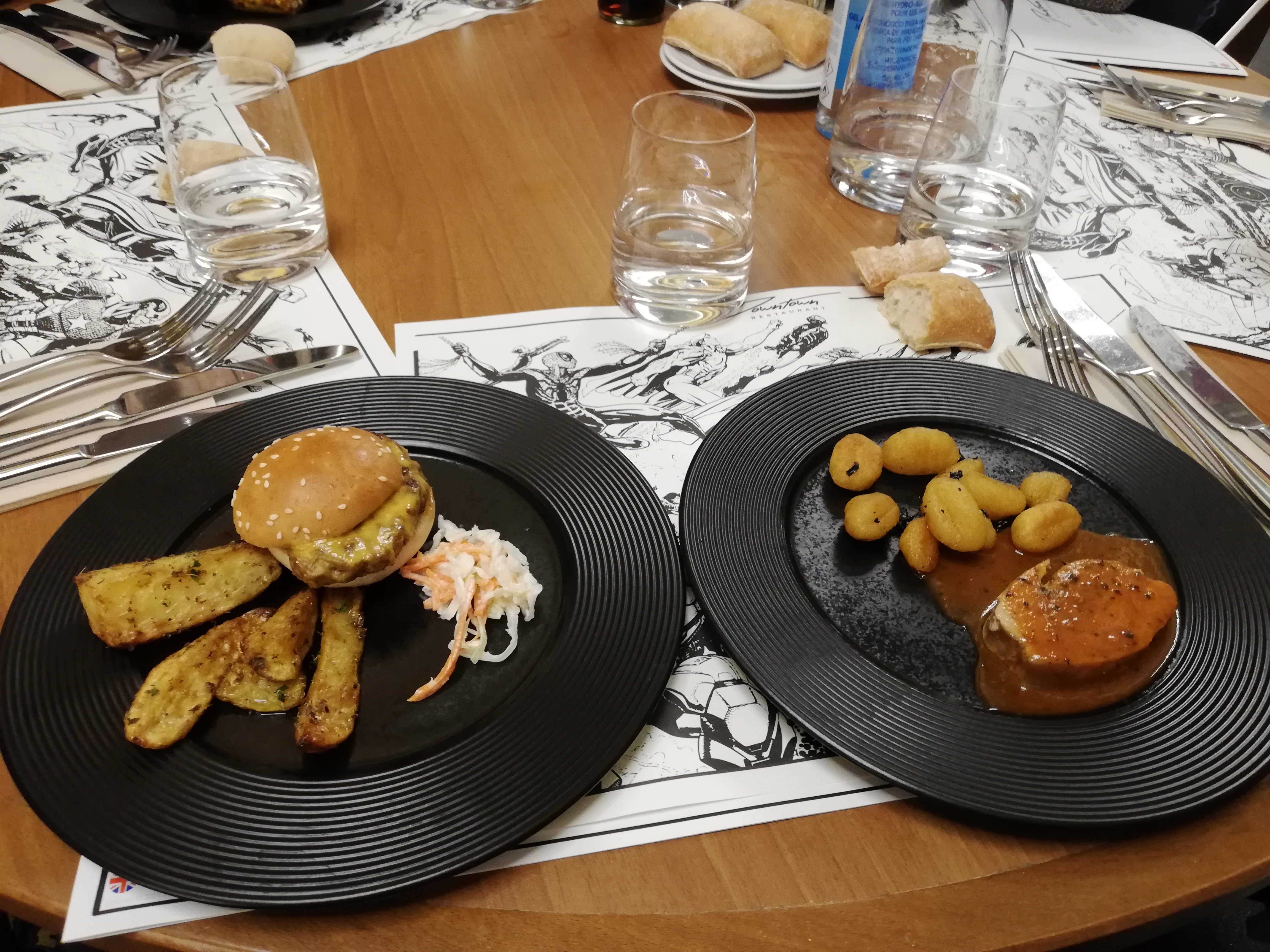Cuisine avec beaucoup de choix, de bonne qualité, thèmes respecté sur Avengers.le service moyen car serveur a mis 12 minutes pour servir 5 coca ,1 bière,1 verre de vin et un cocktail et en 2 fois, il n'a pas voulu prendre les chèques vacances (ANCV) .l'ambiance parfait pour le réveillon de Noël mais manque 1 personnage.
