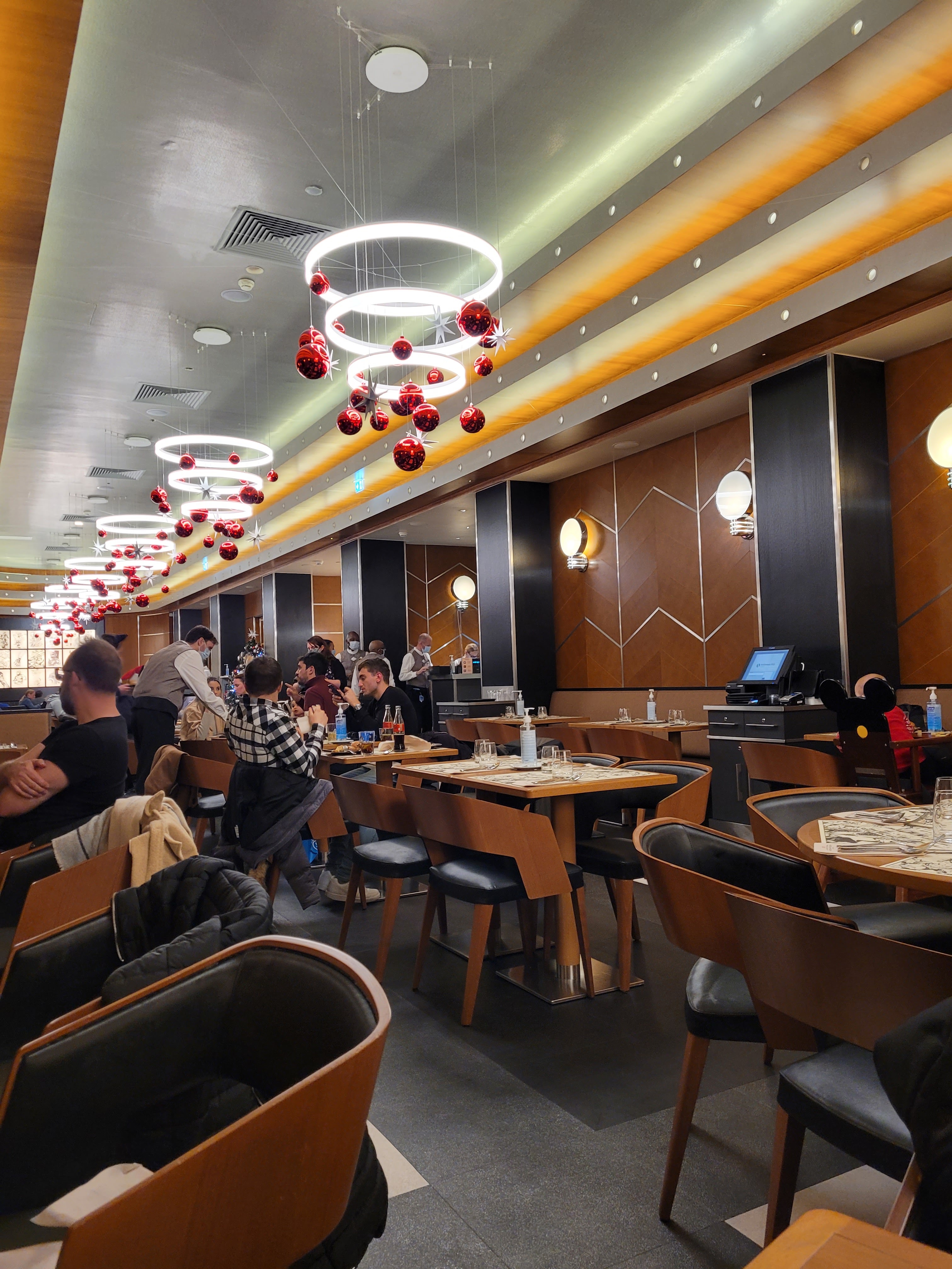 La nourriture était okay, le cadre est beau mais on n’est pas à l’aise du tout : le restaurant n’a pas de fenêtre donc bonjour à ce qui sont claustrophobes, du coup c’est très très bruyant ! On ne s’entend pas et le serveur non plus, bonjour l’ambiance. Pour le prix qu’on paie, c’est mieux d’aller manger au Blue Lagoon (à Adventureland). De plus que le serveur n’était pas aimable du tout, nous avions l’impression de le déranger alors que malheureusement, c’est un buffet à volonté servi à table. À faire une fois seulement pour tester.