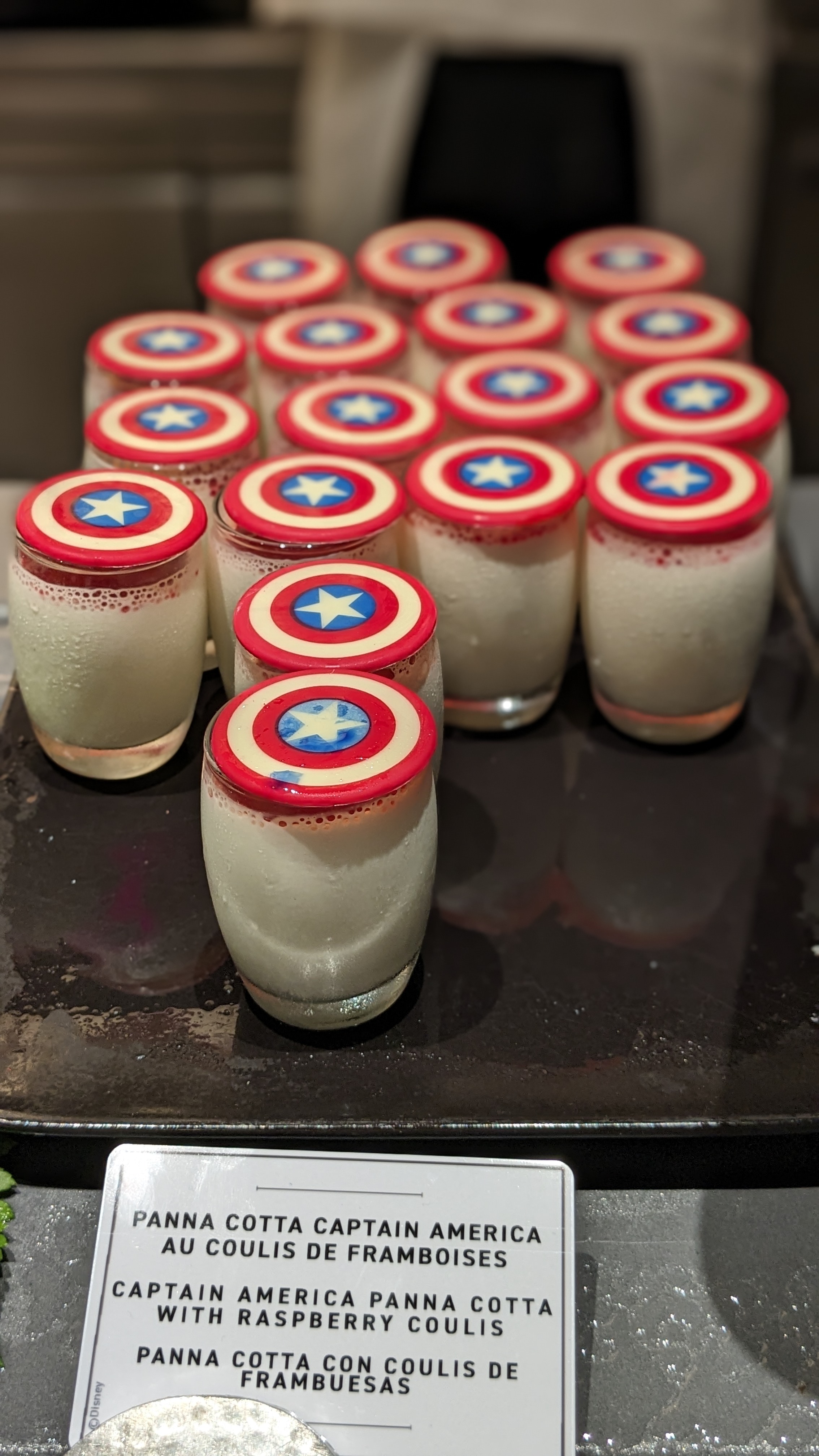 Nous y avons mangé lors de notre visite à Disneyland. Nous y sommes allés plus tard (21 heures). Mais tout était toujours là et a été réapprovisionné. Certains plats étaient un peu tièdes. Il était divisé en 3 sections : américaine, italienne et chinoise. Il y en a pour tous les goûts, y compris les végétariens/végétaliens. Toute la nourriture que nous avions était bonne à manger et bonne au goût. Mais ce n’était rien de spécial. Ce qui était génial, c'est que le thème Marvel était repris encore et encore dans la nourriture.