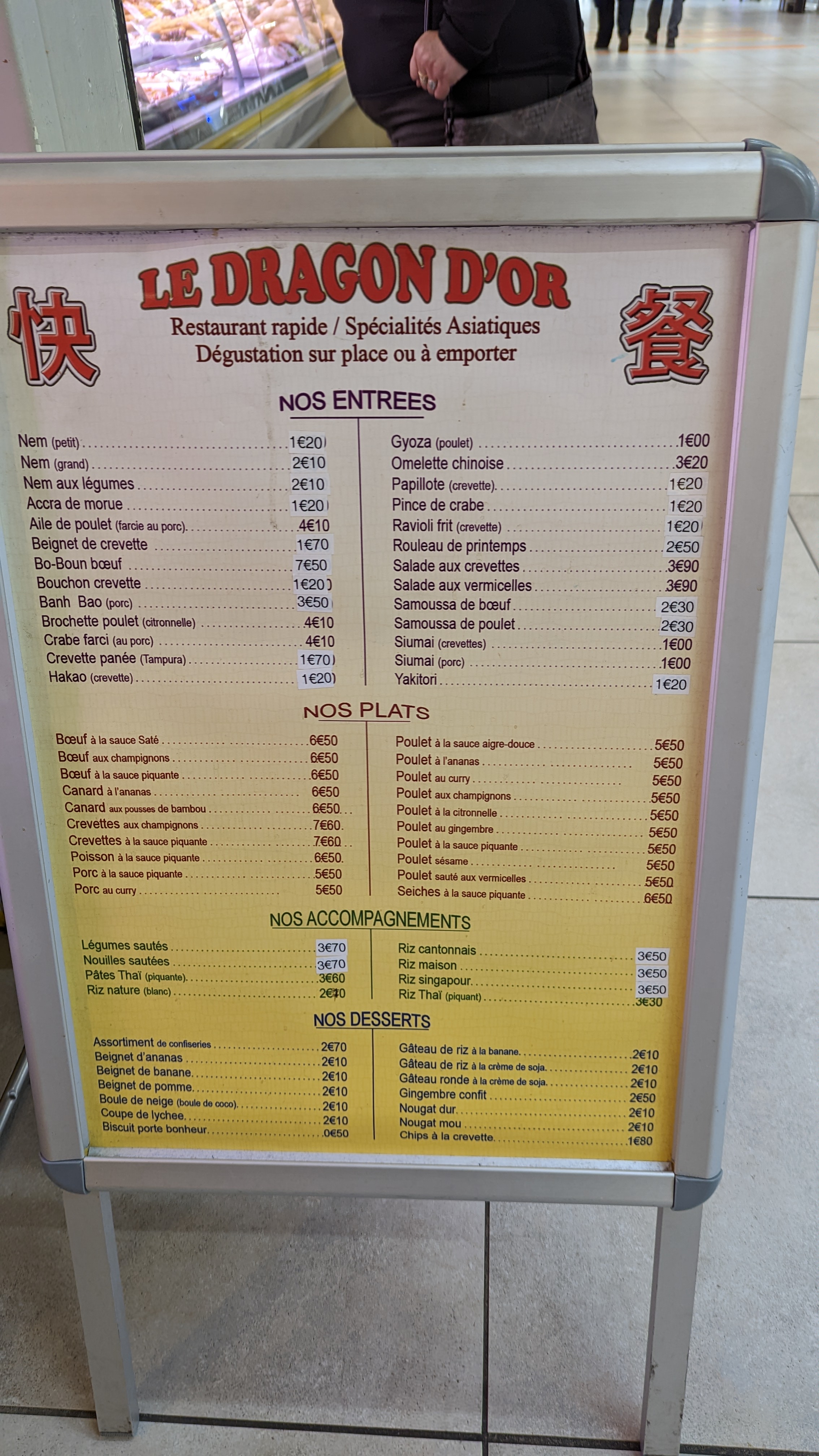 Franchement je le recommande a 200% on a était très bien accueilli..très vite servie ..des personnes agréables souriant très chaleureuse..cuisine excellente nems fais maison..plaît très copieux..on y retournera .et ça fait du bien de pouvoir manger à toute heure des plats chinois,.c est une très bonne idée ..