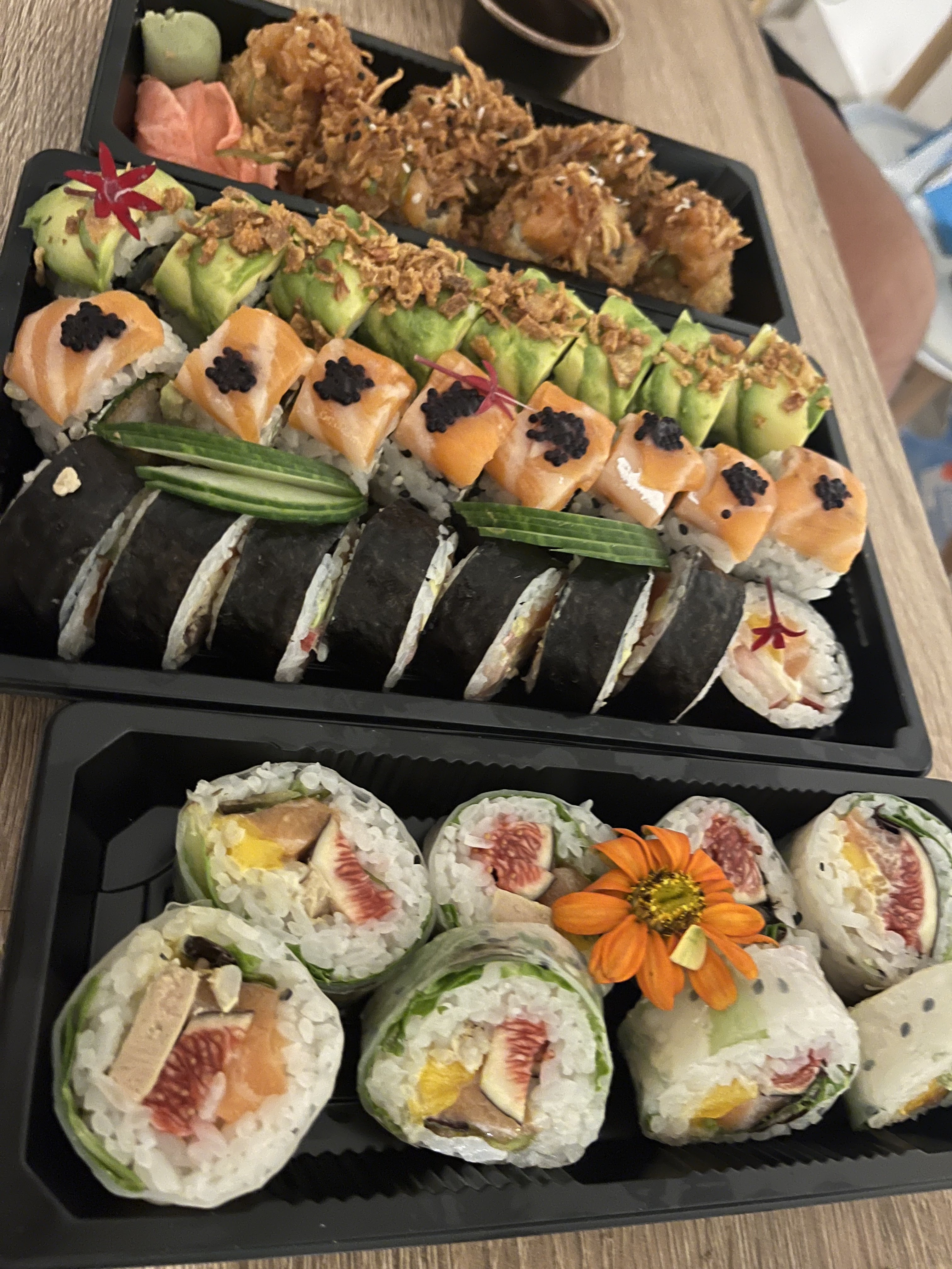 Excellents sushis, beaucoup de goût et on sent que les produits sont ultra frais et de qualité. Il y a certains sushis très originaux : à tester vraiment !