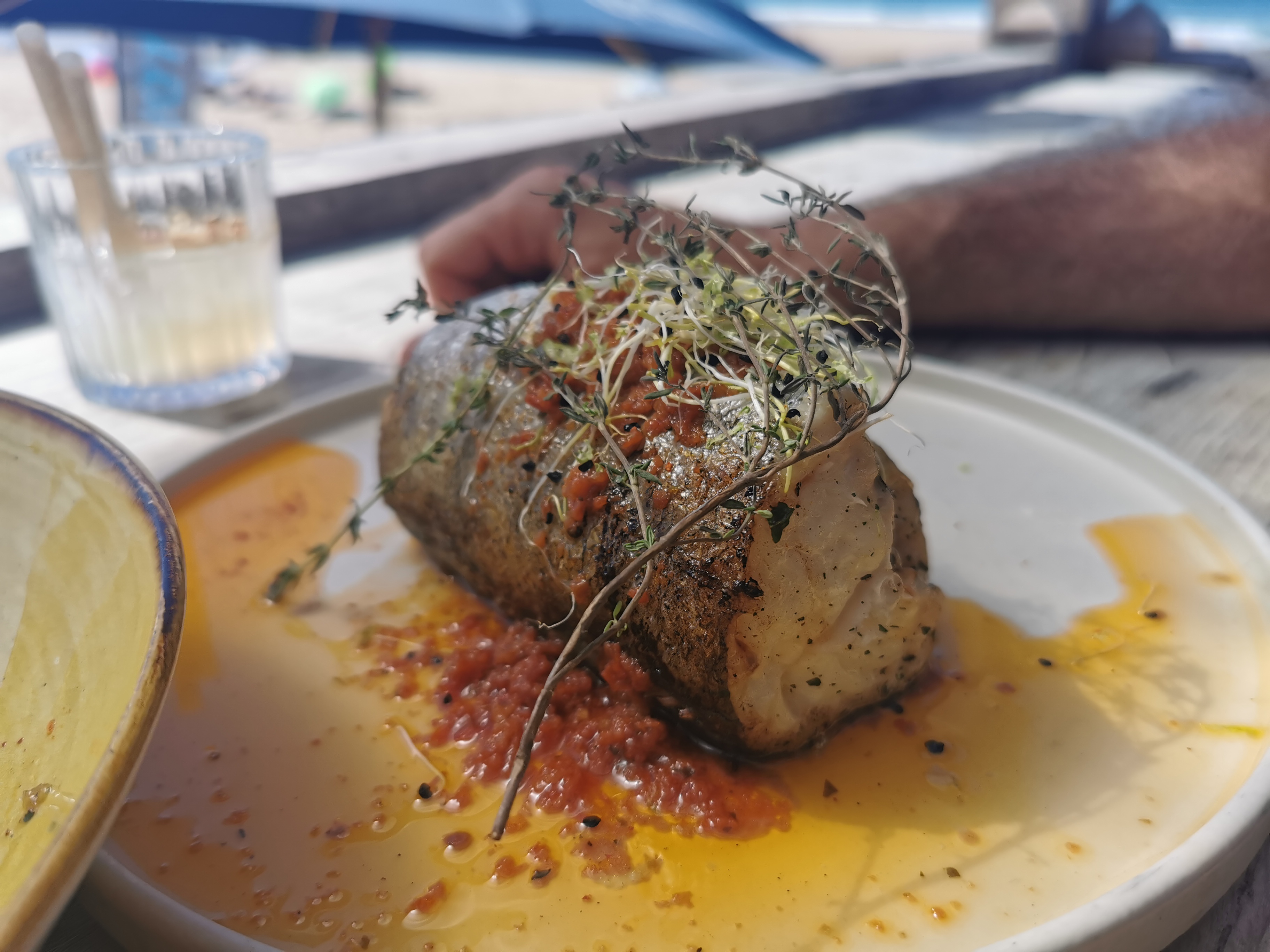 Emplacement sympa mais lorsque le temps n’est pas terrible Inde retrouve à manger face à une bâche opaque plutôt que face à la mer. Ça doit être sympa lorsqu’il fait beau…