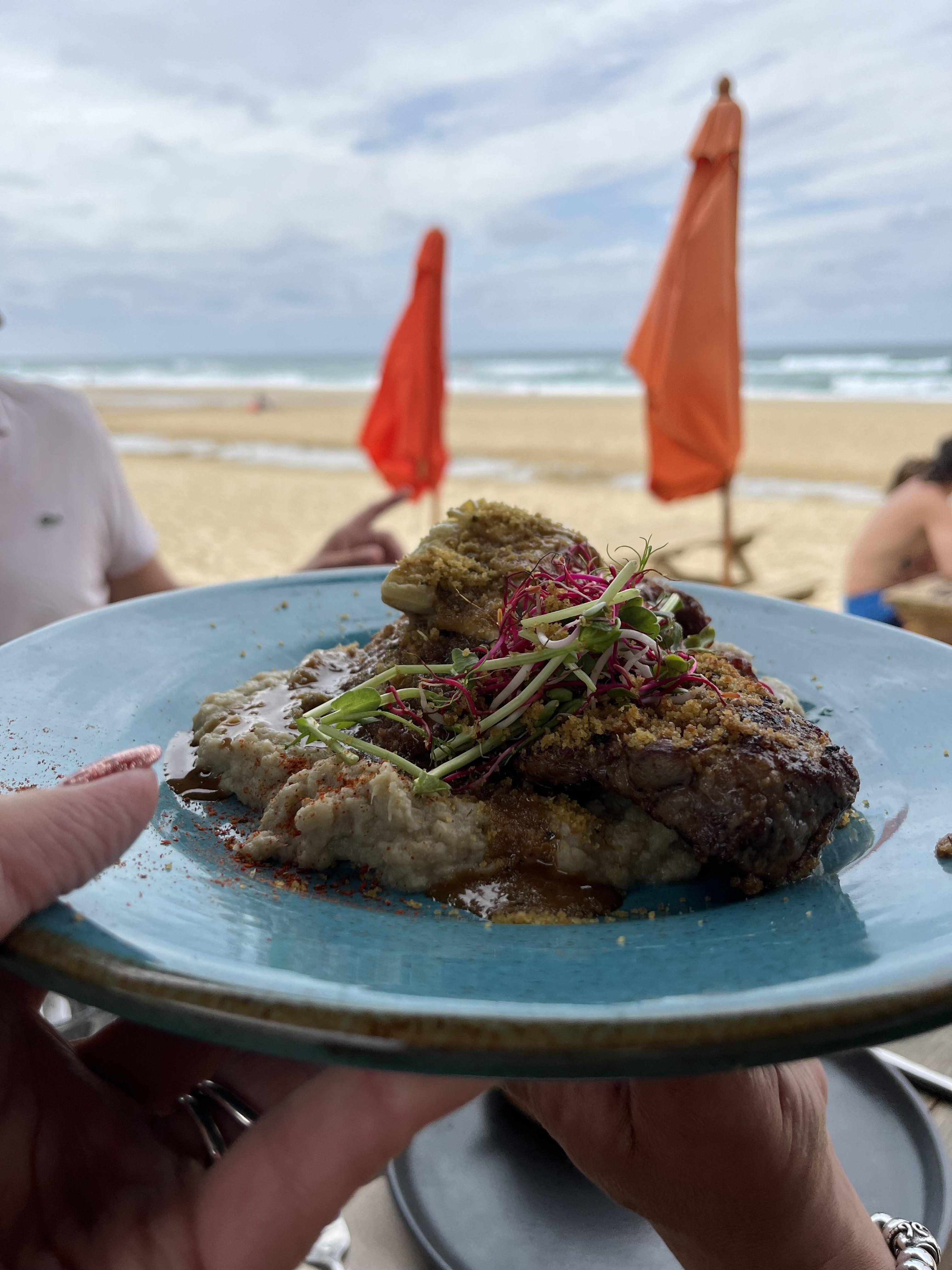Le cadre du restaurant est juste magnifique. Manger les pieds dans le sable et être à quelques mètres des vagues est juste super. Les serveurs sont très agréable au top. Petite ambiance chill et les plats était excellent. super rapport qualité prix. Et le chien étais le bienvenue aussi.