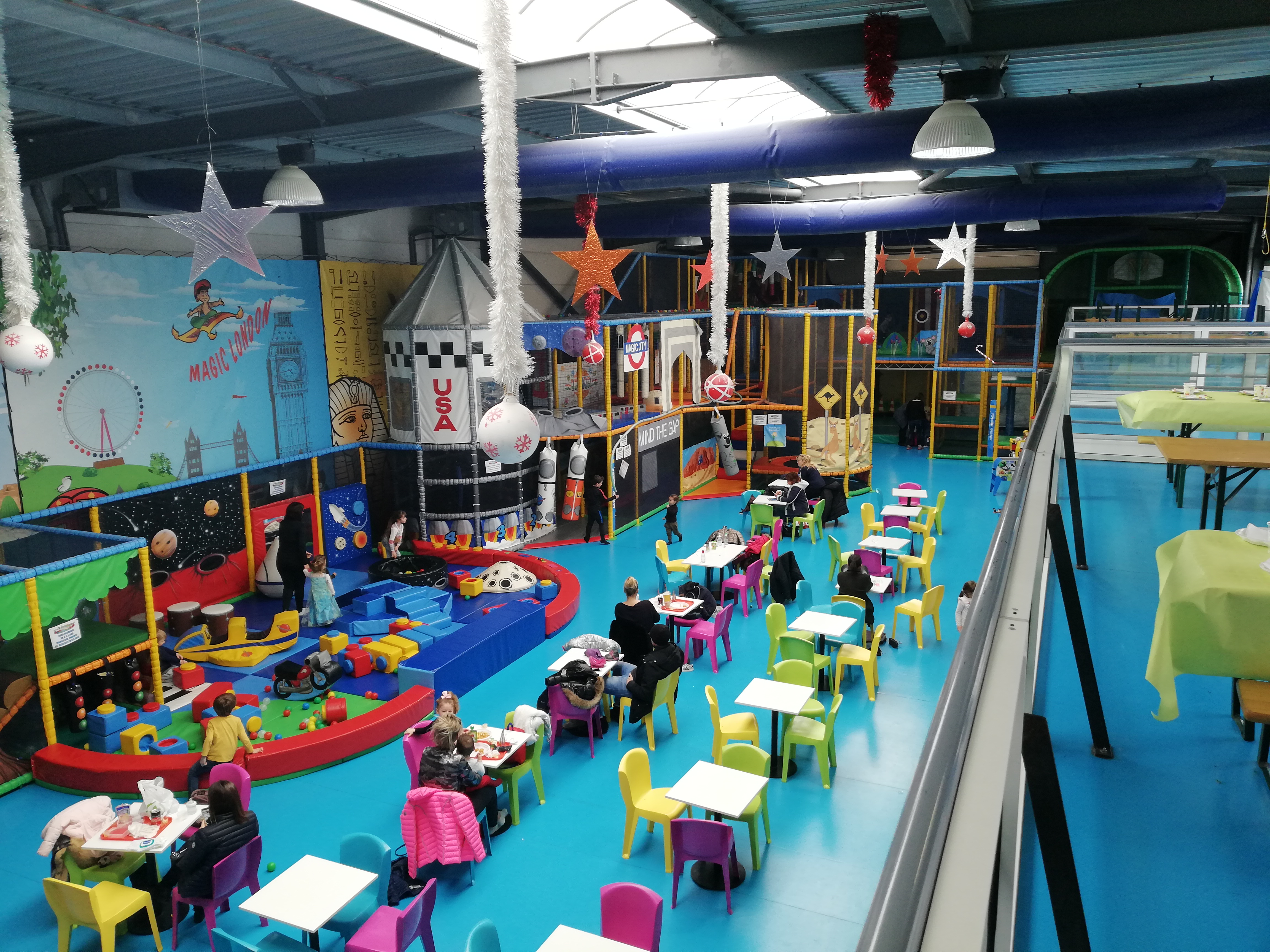 Parc indoor, assez petit en surface par rapport aux autres installations de ce type, ce qui fait que les enfants sont plus facilement repérables. Pour le reste, c'est du classique. Petit coin snack, petit coin réservé aux tout-petits, et coin anniversaire.