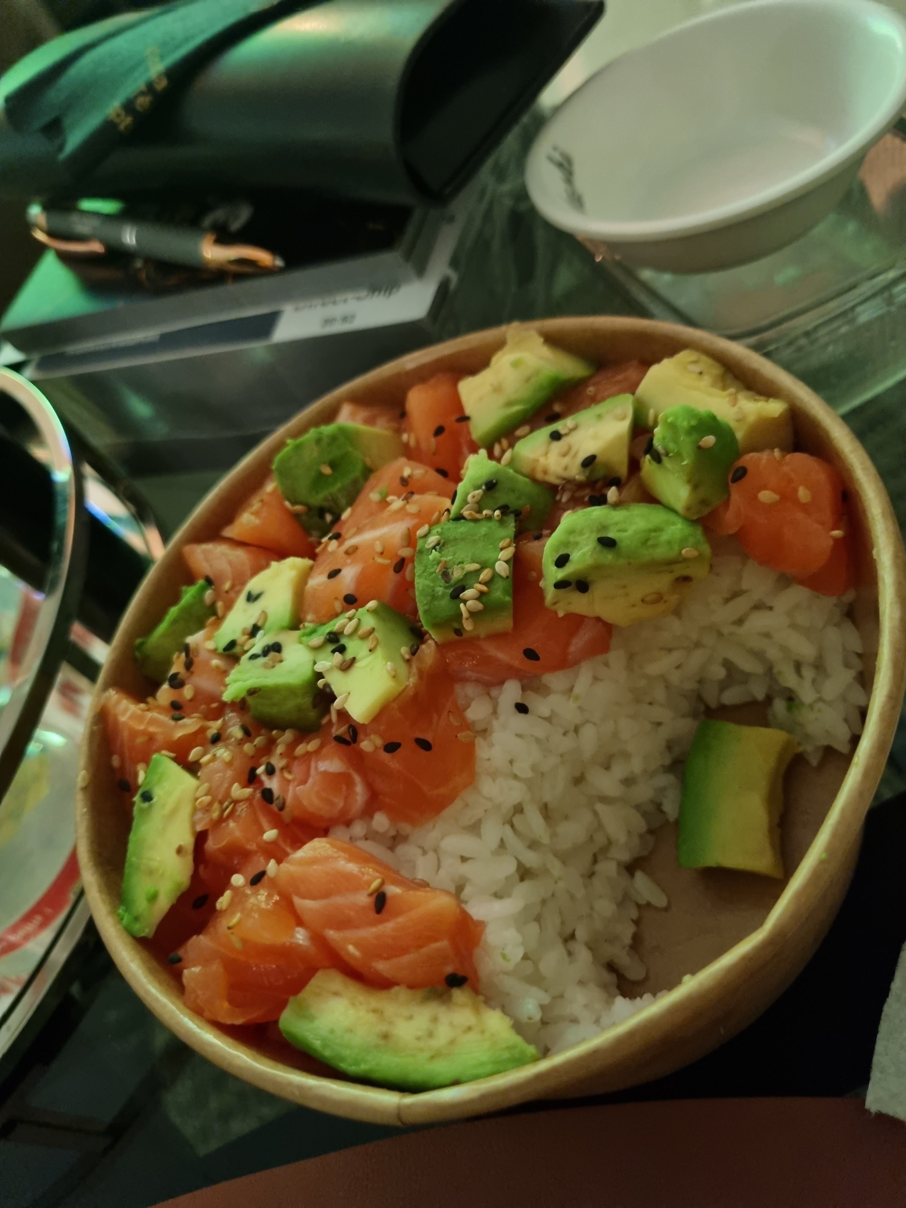Riz beaucoup trop cuit qui laisse peu de place à la saveur du saumon et de l'avocat. Pour un restaurant de sushi il serait pratique d'apprendre à bien préparer le riz à sushi.