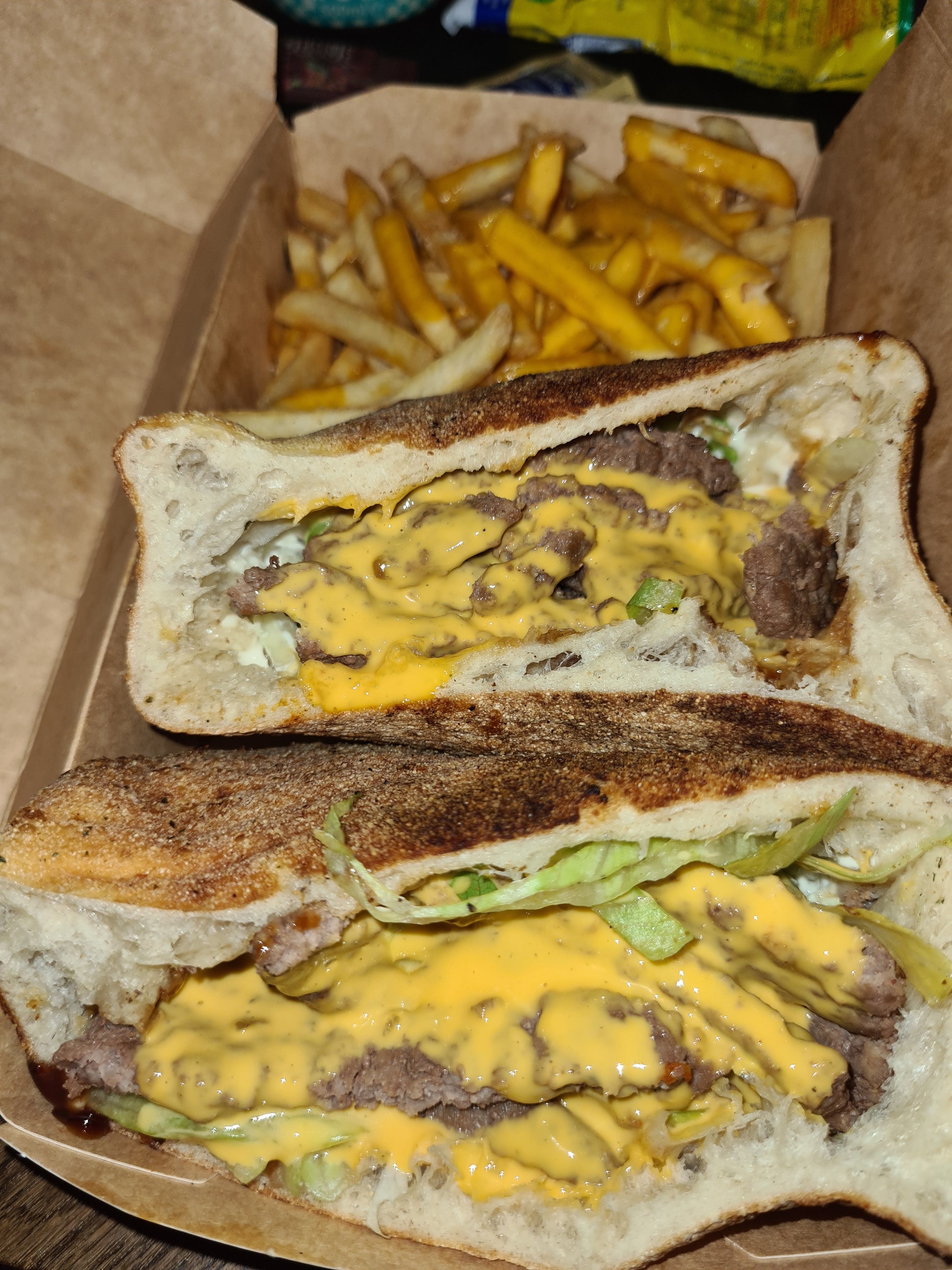 23,50€ pour ça !! La douille du siècle. Burger chétif avec un steak rabougri. Nappé de sauce industrielle et de cheddar industriel. Tiramisu maison surgelé. Blindé d'additifs... On sent que c'est bien fait pour être très rentable et franchement j'aime pas me faire plumer mais là c'est fort. Les menus sont au final hyper cher pour peu que l'on veuille se faire plaisir. 1.60€ en plus pour un 7up cerise ou autre. 3€50 pour du cheddar liquide et trois morceaux de bacon de boeuf sans goût. Pour ce prix là j'ai mangé tellement mieux ailleurs avec du vrai smash burger ou gourmet de qualité bien supérieure. Sans viande surgelée... avec des frites maisons et pas de sauce industrielle en tubes. Franchement c'est abusé. Surtout en banlieue. Pas l'habitude de taper l'affiche sur les avis mais là c'est mérité. Prenez un ticket de metro et allez chez PNY par exemple ou chez Homies à Pantin vous verrez la dif sans vous faire pigeonner !!