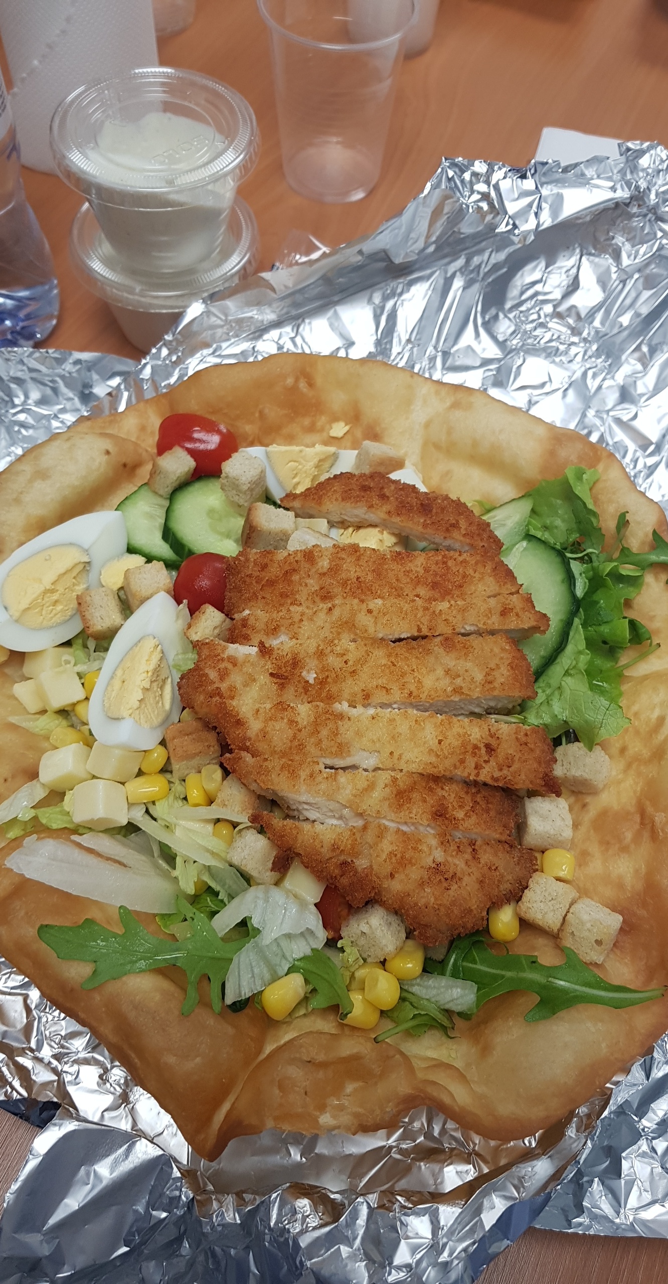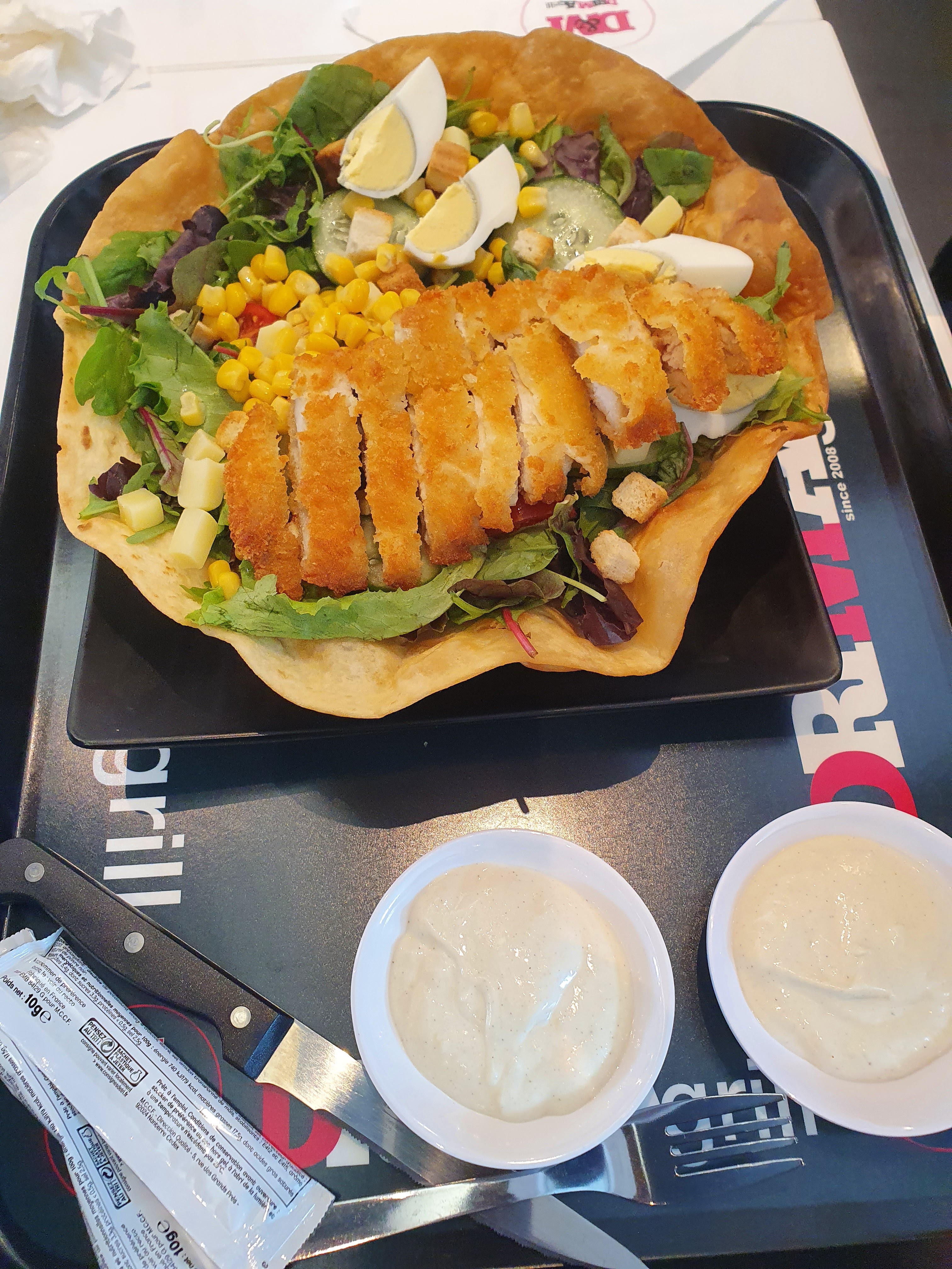 Salade bonne et copieuse aussi, prix correct et du choix, personnel agréable et le thé à la menthe super bon...On m a demandé d'enlever ma capuche quand he commandais sur leur tablette, je l avais en rentrant psk il faisait froid dehors..