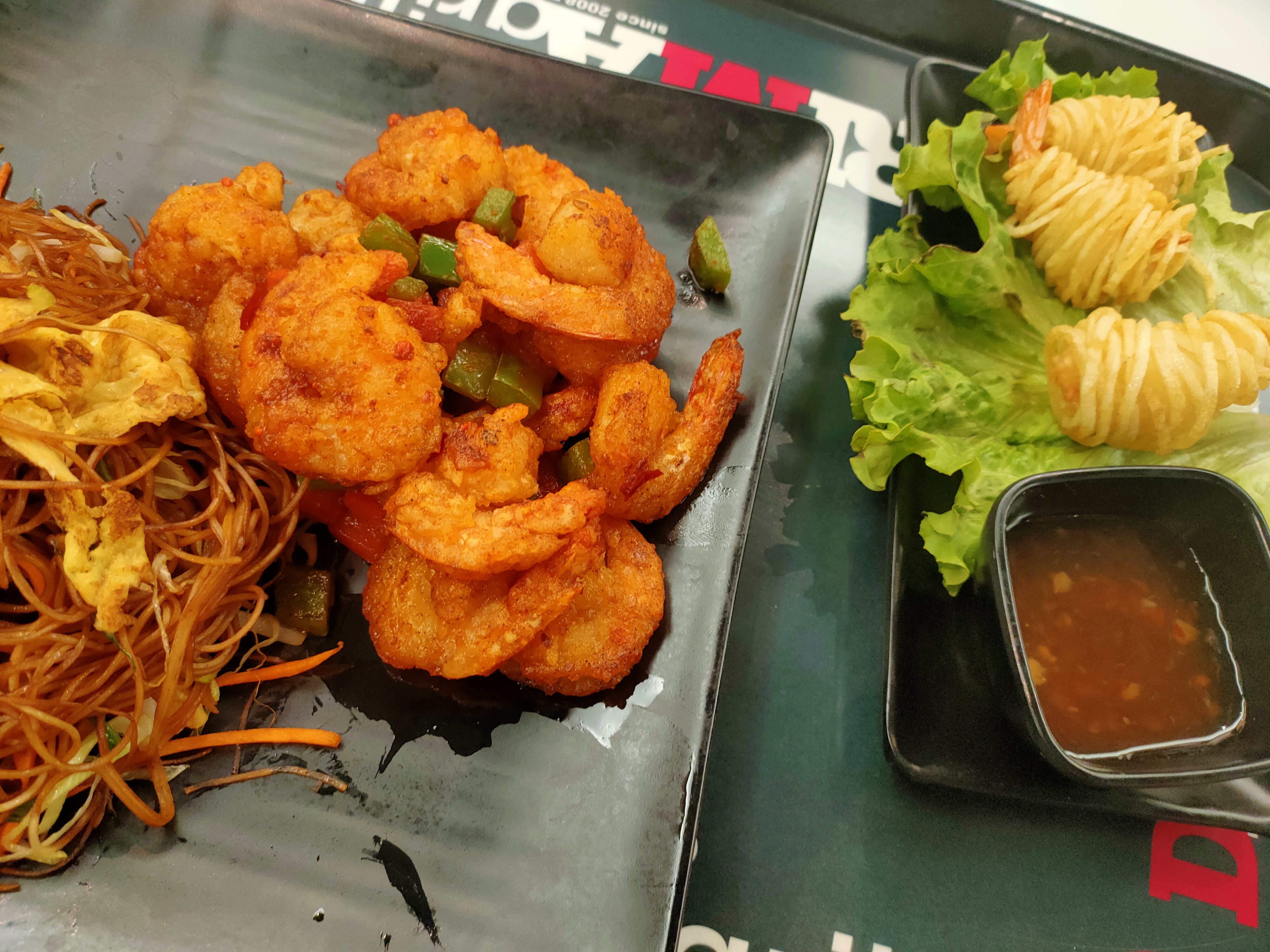 Je pensais aller dans un restaurant mais il s'agit plus d'un fast food. On commande aux bornes, on est placés à des tables par les hôtesses. Ensuite on doit se rendre au comptoir pour récupérer sa commande. Il y a du choix dans le menu. Les prix sont un peu élevés mais la nourriture est très bonne. Très animé et un peu bruyant, c'est bien de s'y rendre en groupe entre amis. Dans cette zone c'est vraiment le seul grand endroit pour accueillir du monde.