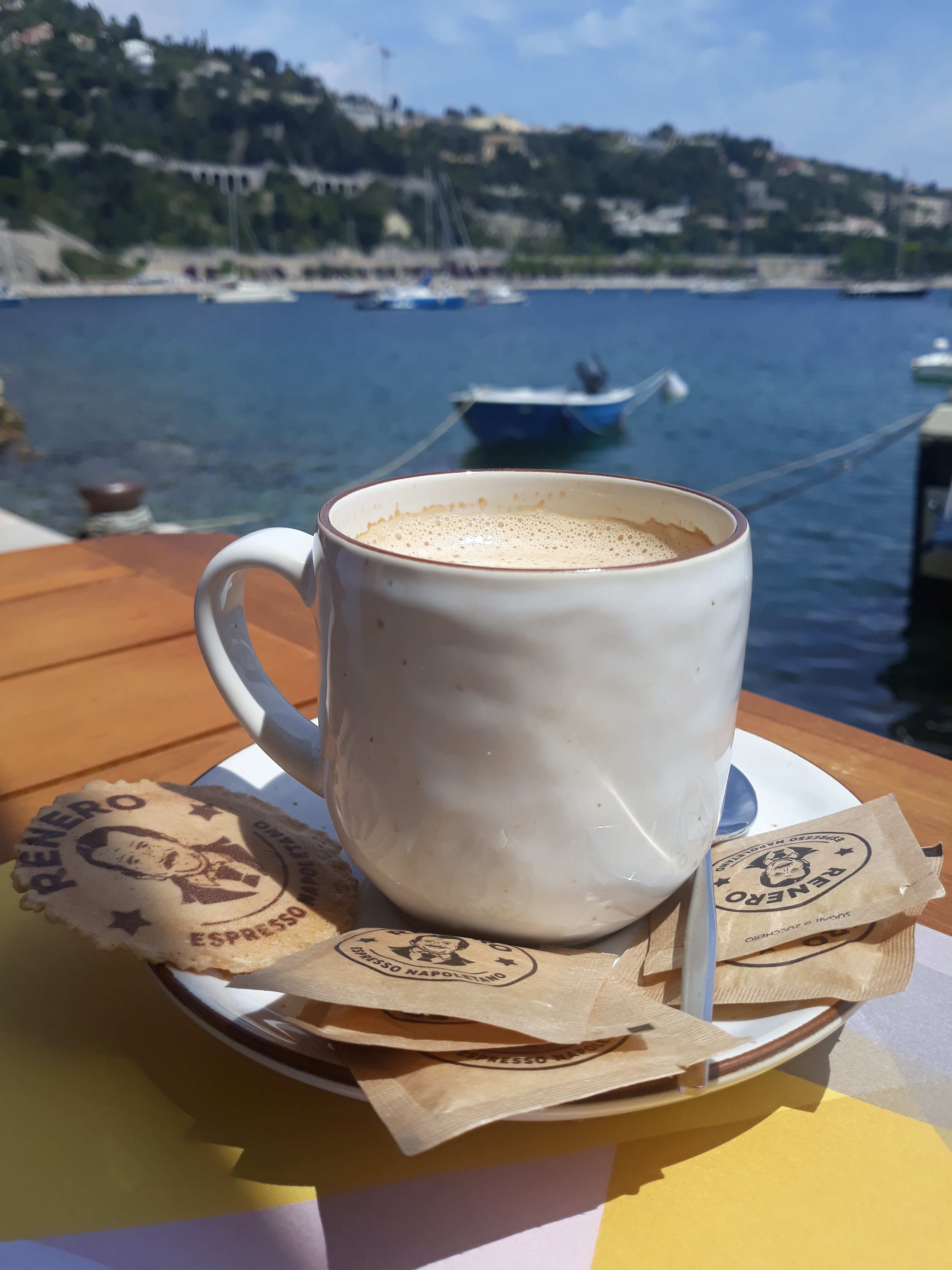 Nous avons bu un petit café au soleil. Rien de formidable....et bien pourtant...accueilli avec le sourire...une petite sucrerie avec le café.. et le soleil en prime...40 minutes de bonheur...sur le port de villefranche sur mer