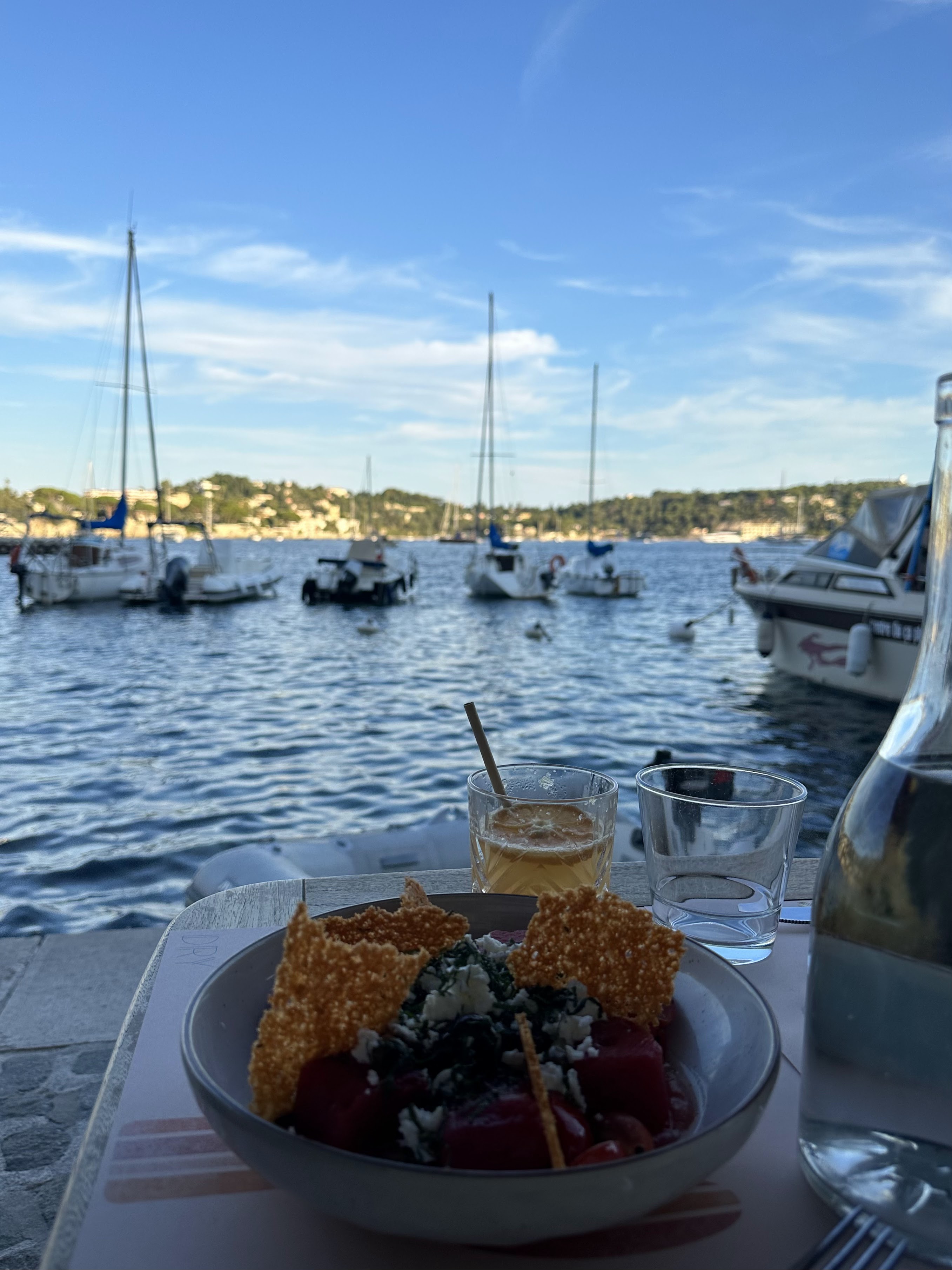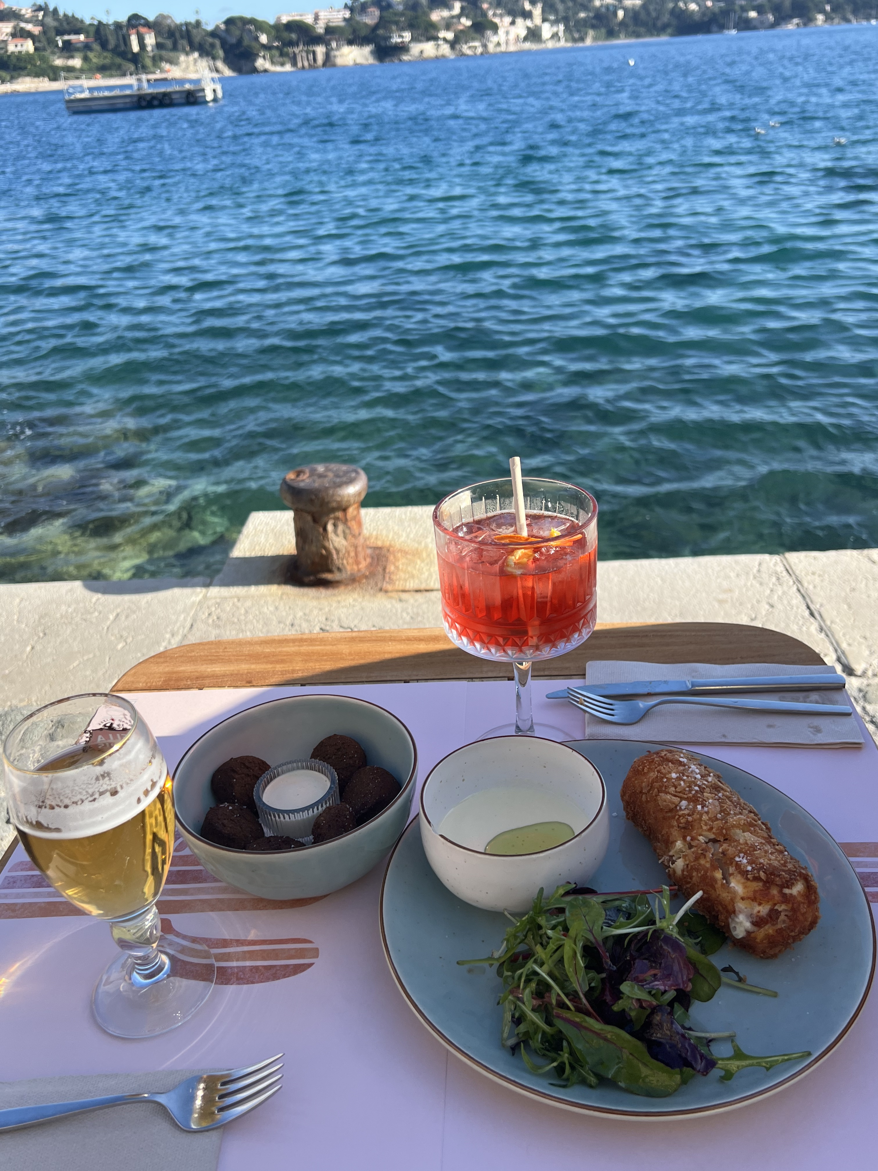 Les plats étaient excellents et bien présentés (on a testé le loup de mer à la bisque de homard et le poulpe). Notre serveur était très sympa! Et le cadre magnifique. Bref, pour boire un verre ou pour manger, je vous conseille d’y passer lors de votre visite à Villefranche! 🥰