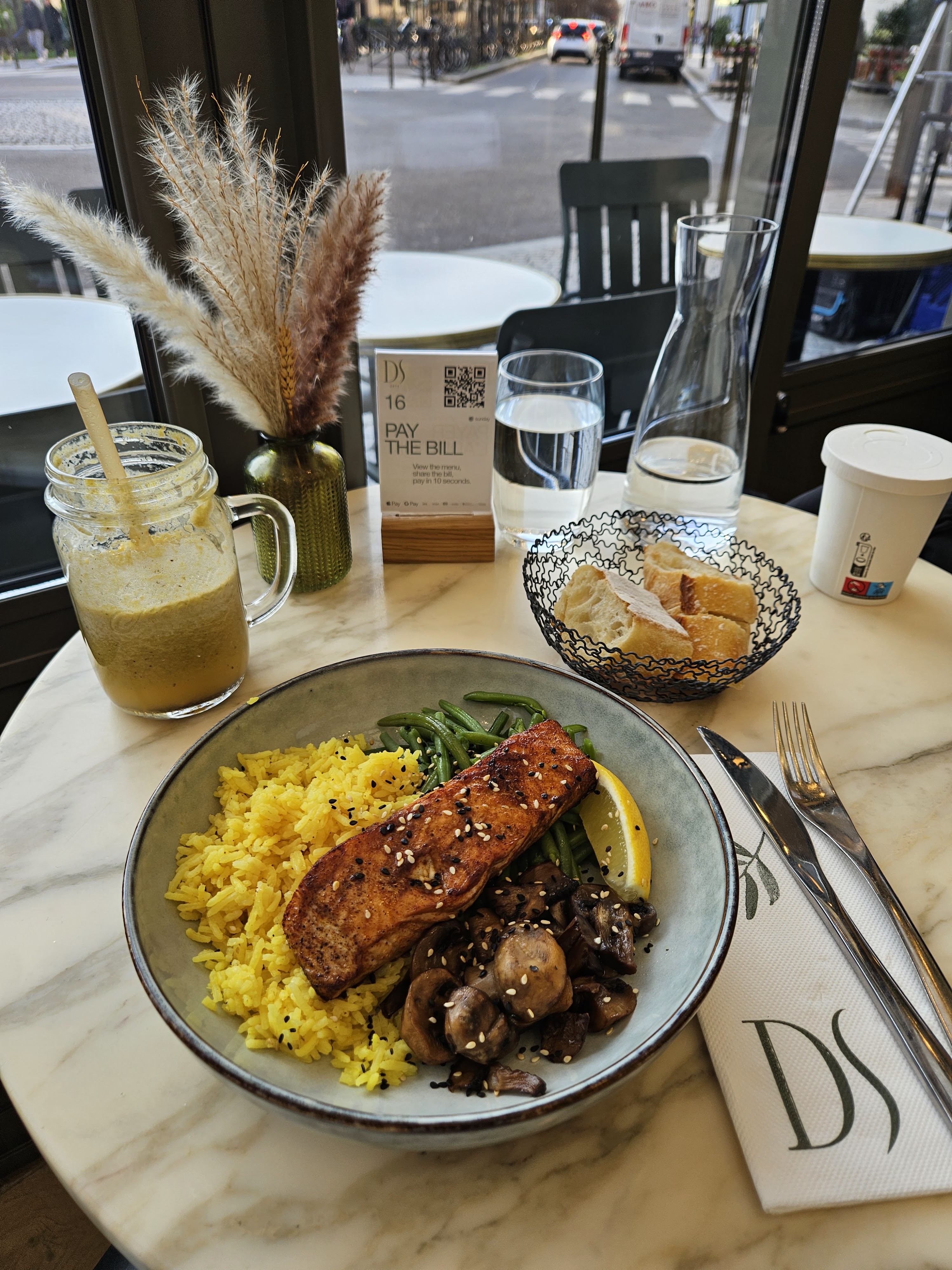 Moment très agréable chez DS café avec une jolie équipe attentionnée et réactive! Saumon mi-cuit préparé à la perfection! Playliste super chill... Merci à Flora, Yves et Lucas pour leur accueil chaleureux.Je reviendrai!