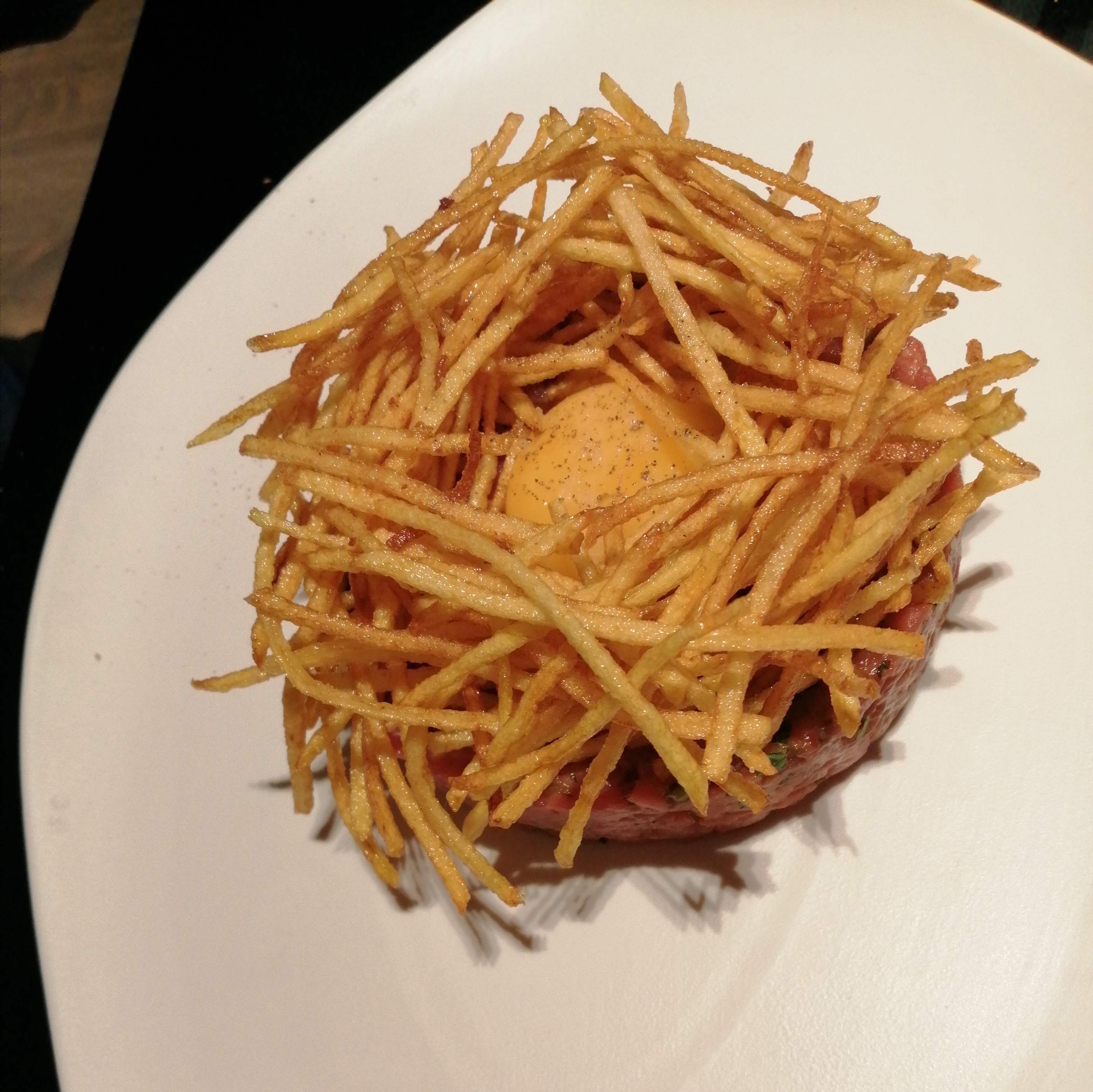 Beaucoup de bruit pour pas grand chose Oeuf parfait ou plutot oeuf trop cuit Faux filet frites salade comme a la brasserie du coin Le goût n y etait pas pour le prix des plats !!! Carte tellement reduite qu il n y a rien d attrayant Je m attendais a en prendre plein la bouche et bien j en ai pris plein les yeux ca c sûr les plat sont bien dresser mais ca ne fait pas tout Service tres agreable meme si nous avons tous été tres deçu pour une premiére Bonne continuation