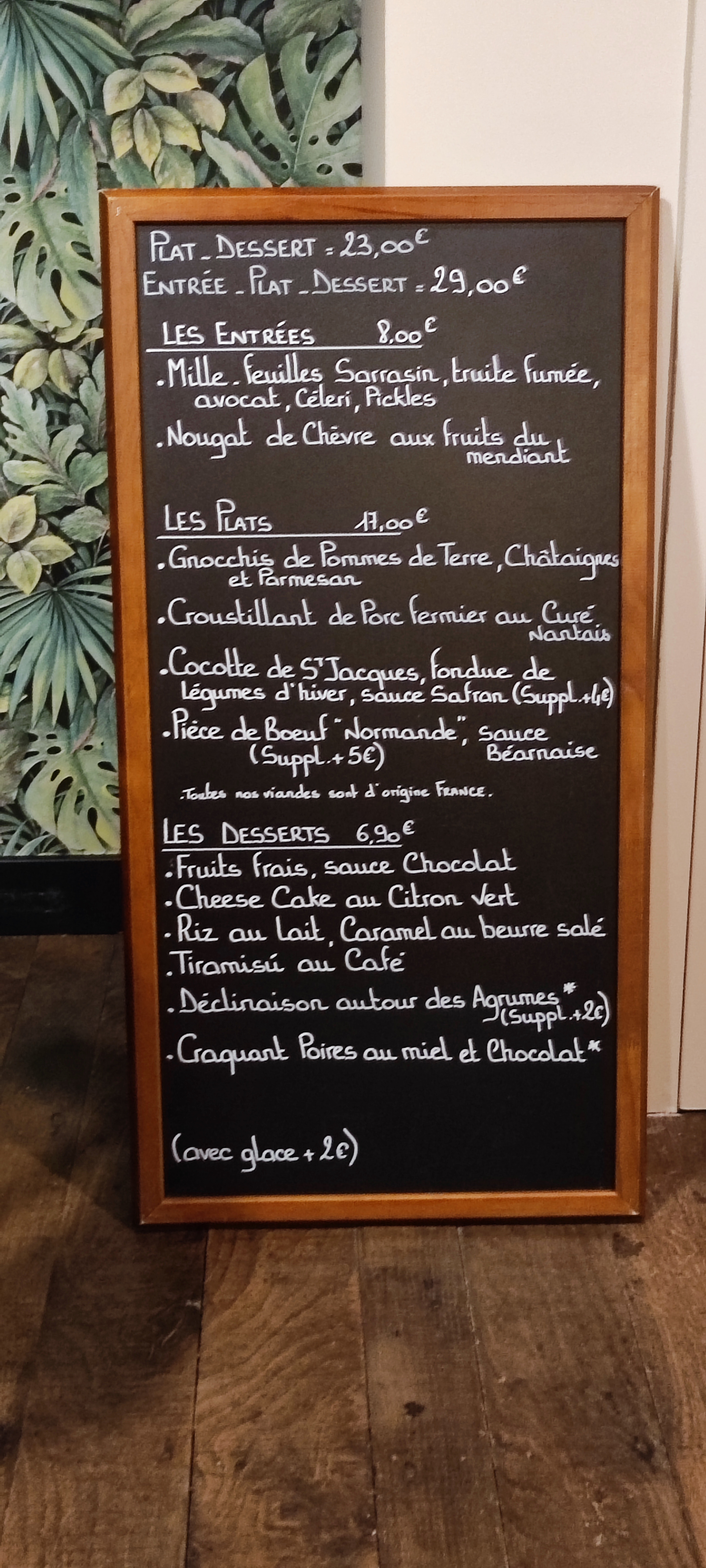 Dommage qu'il n'y ait pas de choix au niveau des entrées seulement plat/dessert par contre mon cheesecake était Extra tarif un peu cher