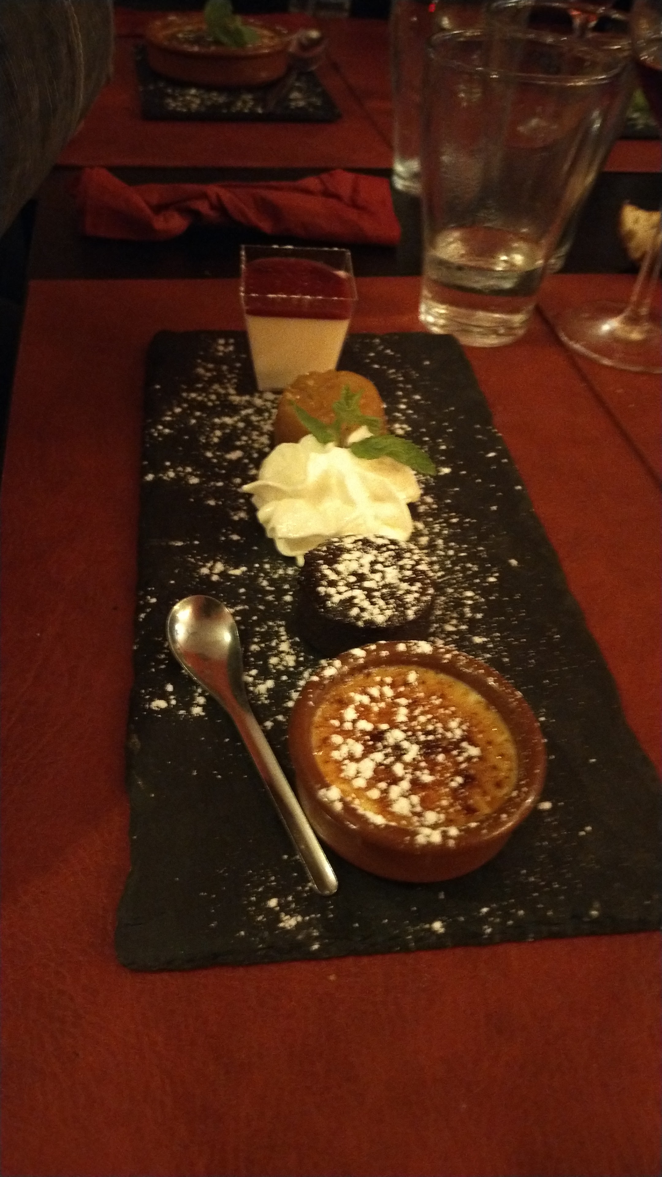 Nous avons pris la salade burata plutôt très bonne, ainsi qu’une crème brûlée mais froide.... L’emplacement et l’aménagement extérieure est agréable. En revanche des efforts à faire sur le service (peu accueillant, plats et verres posés brutalement sur la table). Bien dommage