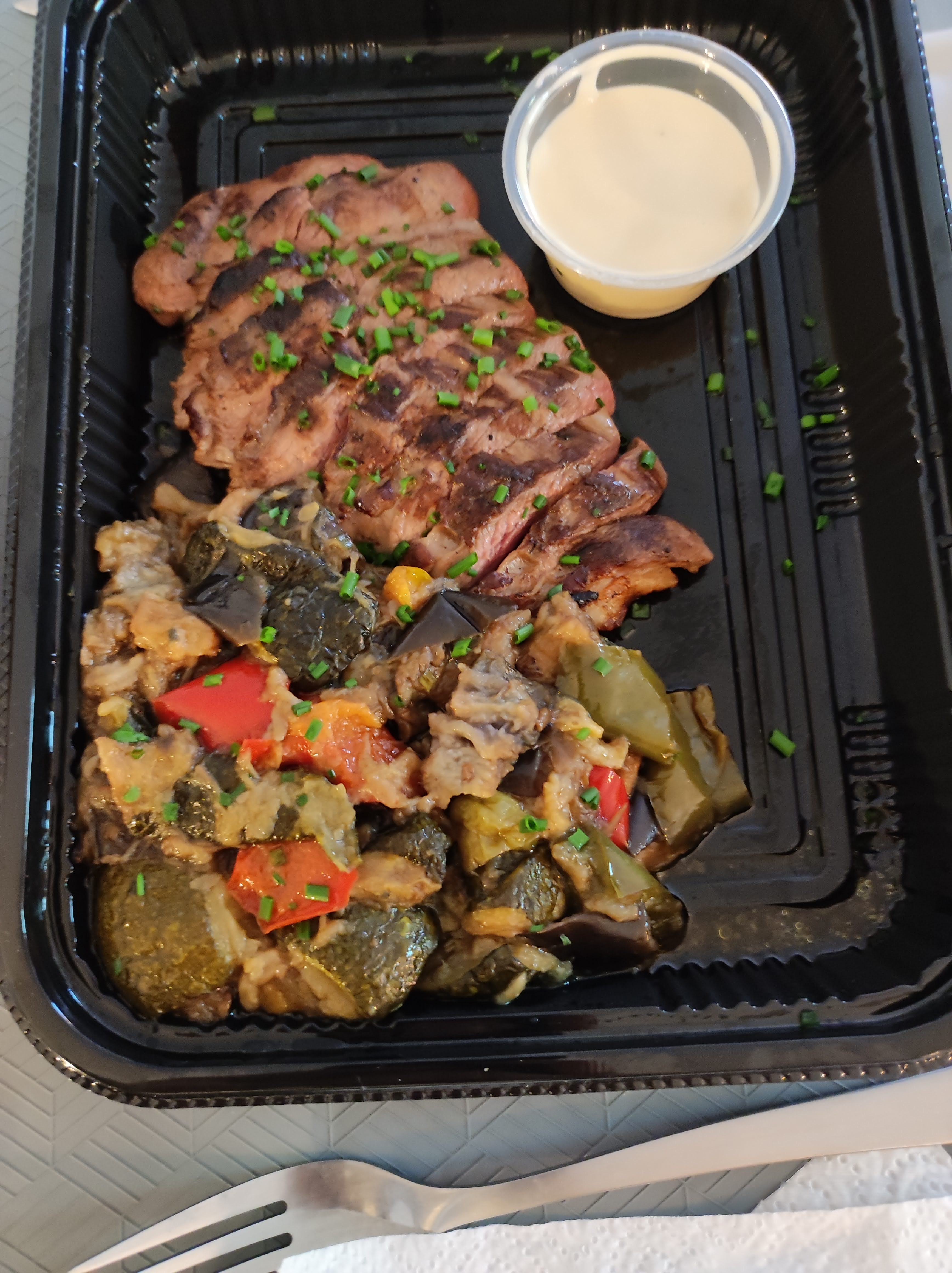 Ayant commandé via Deliveroo dans ce restaurant qui était assez intrigant pour moi, j'ai décidé de le tester pour la première fois. Côté commercial : J'ai apprécié le fait que l'on m'offre une petite bouteille de thé à la menthe frappé qui était d'ailleurs excellent gustativement parlant ! Côté plat : J'ai décidé de commander la bavette accompagnée de la ratatouille maison pour voir si le goût était au rendez-vous, ainsi que les tagliatelles, et j'ai été agréablement surpris. Points négatifs : Comme dans tout avis, il y a du positif, mais aussi du négatif, et j'ai décidé d'attribuer 4 Étoiles sur 5, car : - Je trouve que les légumes contenaient un peu trop d'huile, ce qui fait que ça cachait le goût malgré lui. - La portion de ratatouille qui venait accompagner la viande, était légère, bien que suffisante pour des mangeurs modérés. Je vais donc recommander ce restaurant autour de moi, et qui sait, peut-être commander d'autres plats afin de voir ce que l'on a d'autre à me proposer !