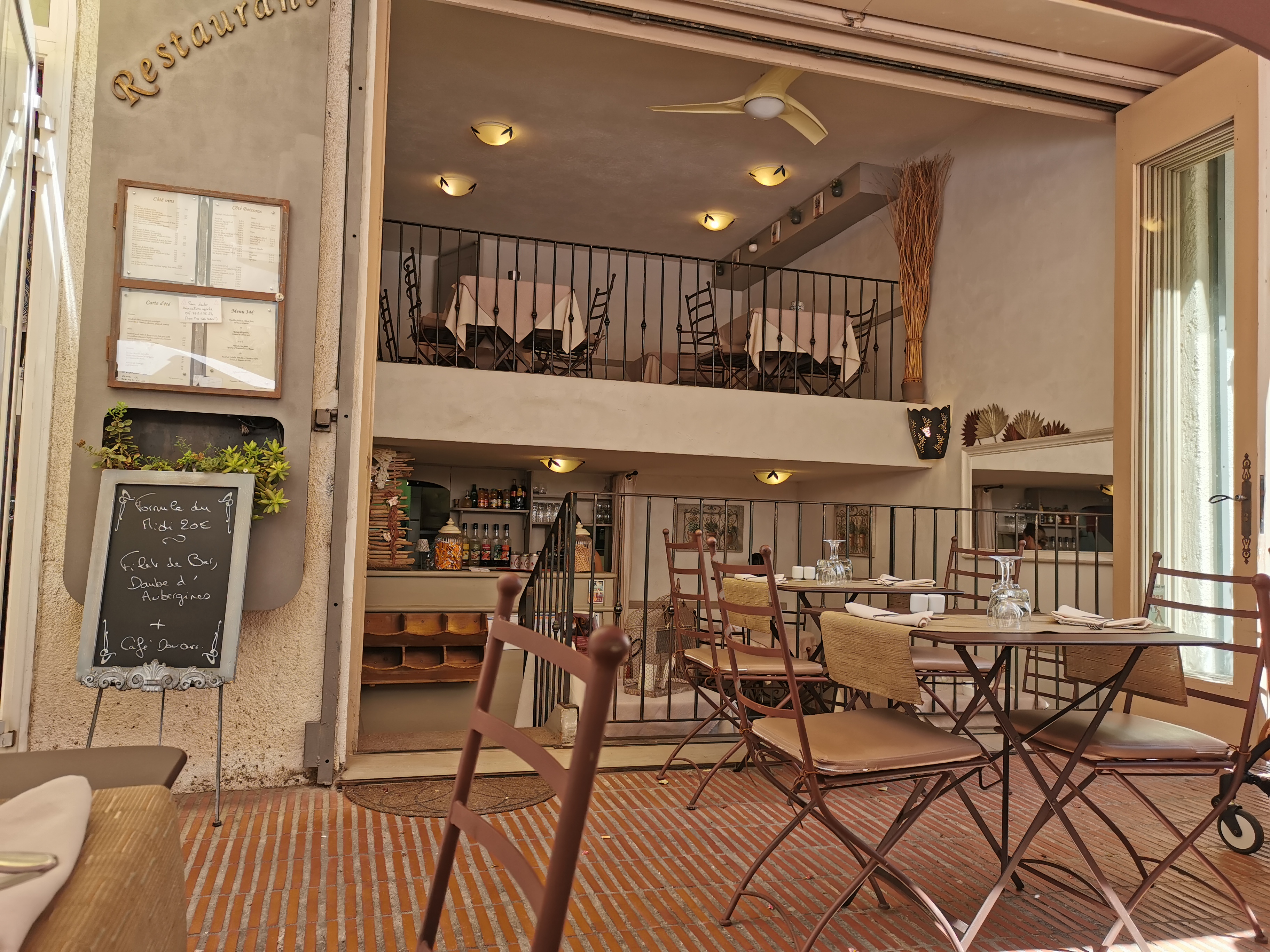 Superbe table à Bandol. En Amoureux à l'étage. Plats frais, copieux et bien dressés. Bons vins. Petit conseil, à l'étage, mettre une lumière tamisée et des bougies/loupiottes pour faire une vrai coin cozi pour les couple. (Au lieu des plafonniers un.peu trop forts). Super endroit à Bandol, très bonne table, à recommander.
