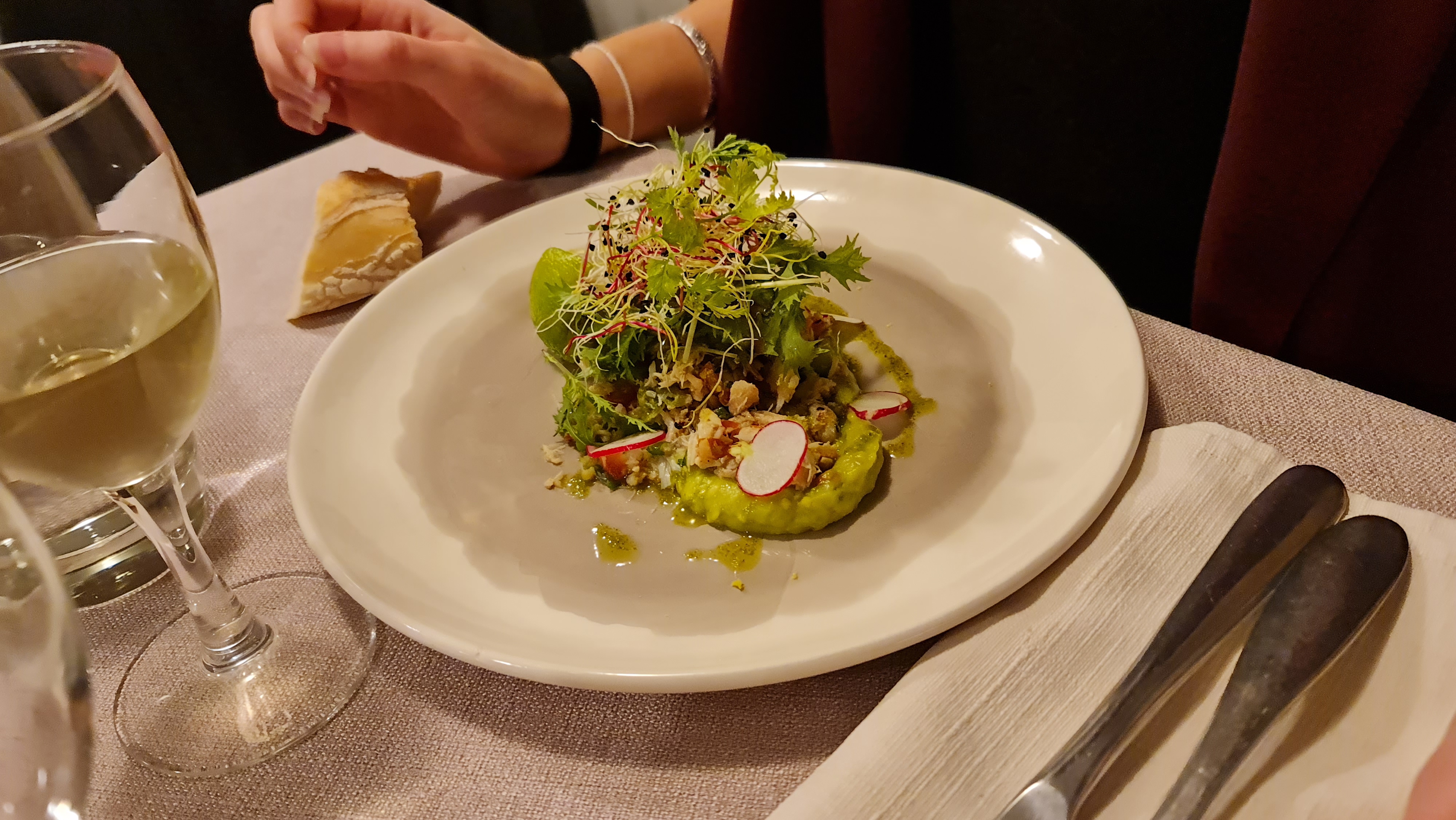Cuisine raffinée et de saison, magnifique présentation des plats, accueil chaleureux, vaut largement la peine de quitter le bord de mer pour bien manger, excellente adresse