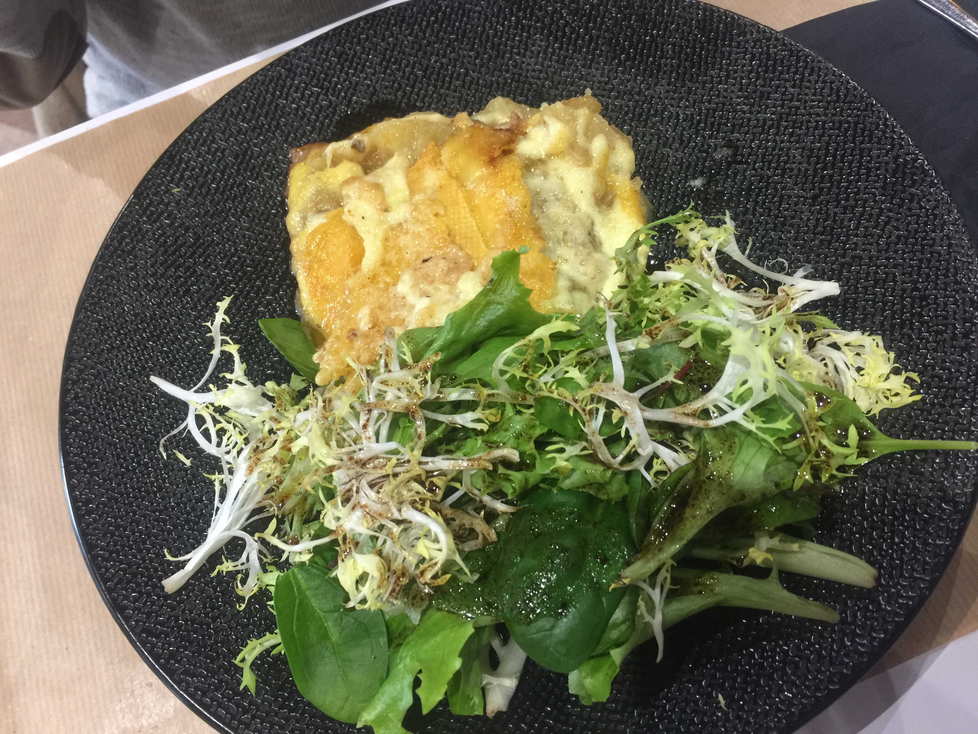 J'ai passé un très agréable moment avec mes 9 collègues de travail. La cuisine est faite maison. La carte est courte et le menu est à un prix très raisonnable pour la qualité des plats qui sont bons et copieux. Merci au personnel qui s'est adapté rapidement et très gentiment à une collègue végétarienne.