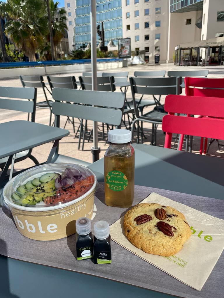 Commande UberEats : Salade correcte mais ridiculement petite, Pokebowl à la limite de l’immangeable tant il est sec et ce n’est pas la minuscule vinaigrette qui vient avec qui peut y changer quoi que ce soit. De plus, lorsque l’on demande un dessert, on aimerait recevoir celui qu’on a demandé. Je ne recommande absolument pas.