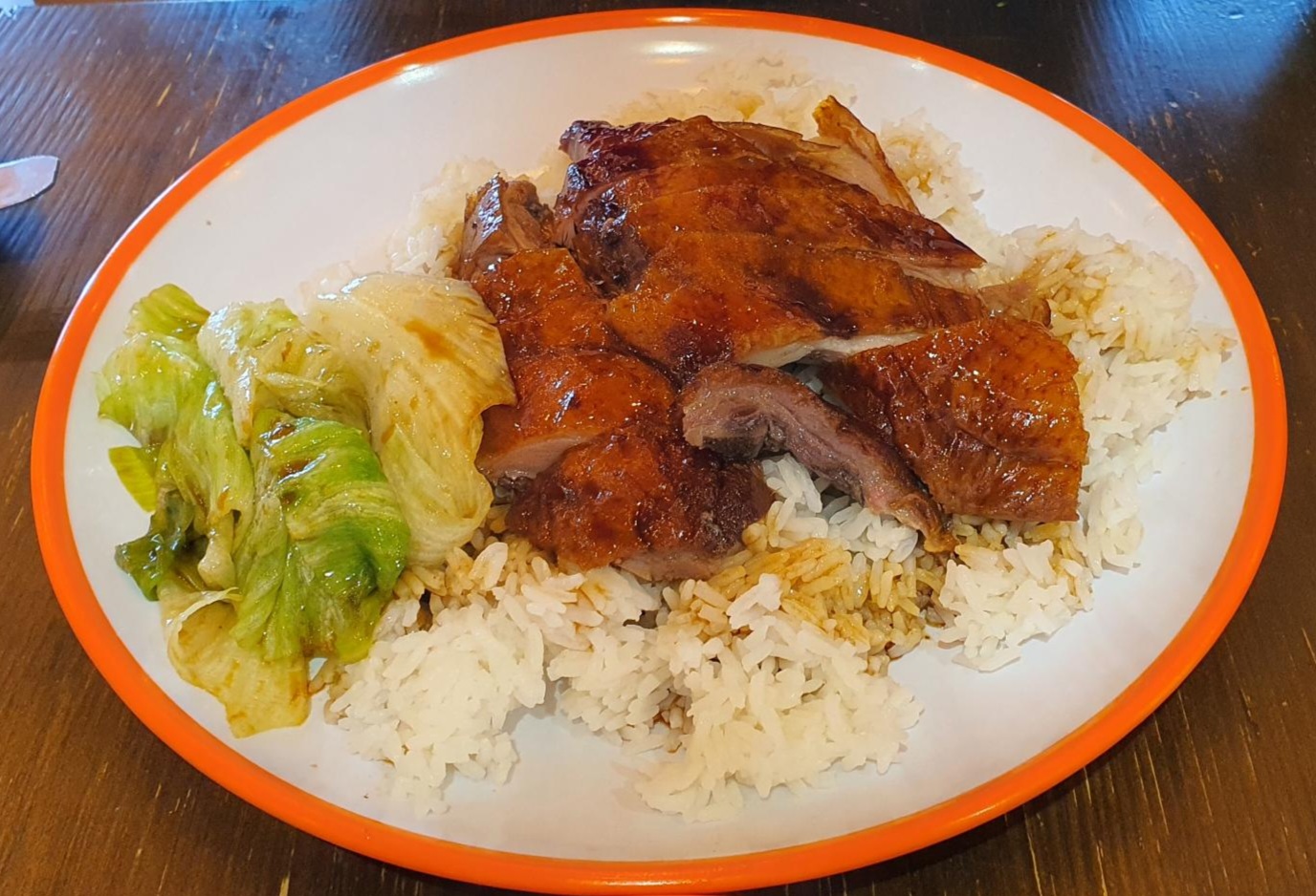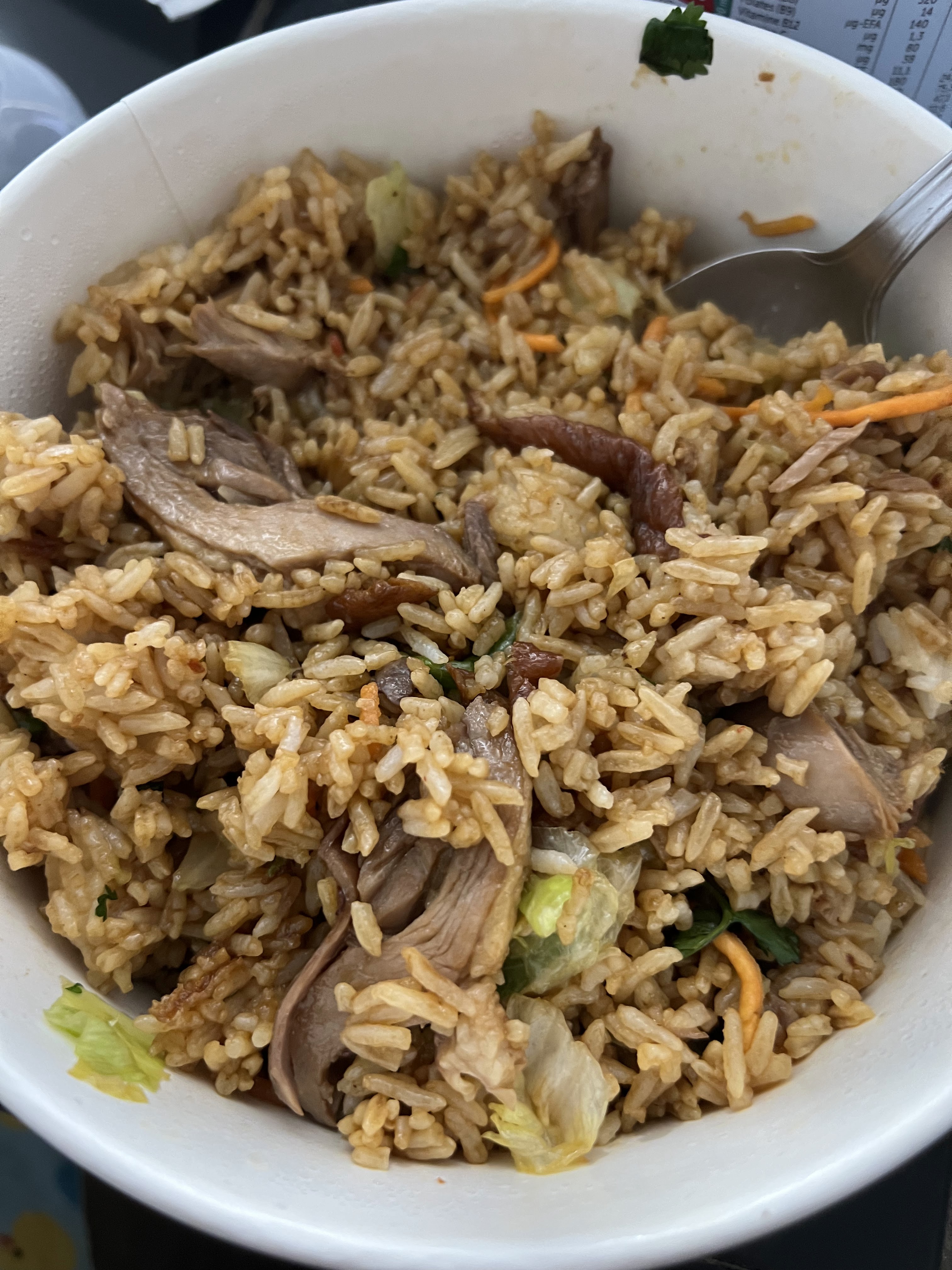 Miam!! Riz du chef trop bon, c’est hyper généreux et y’a plein de morceaux de canard, j’ai même pas pu finir que je vais garder pour ce soir encore 😂