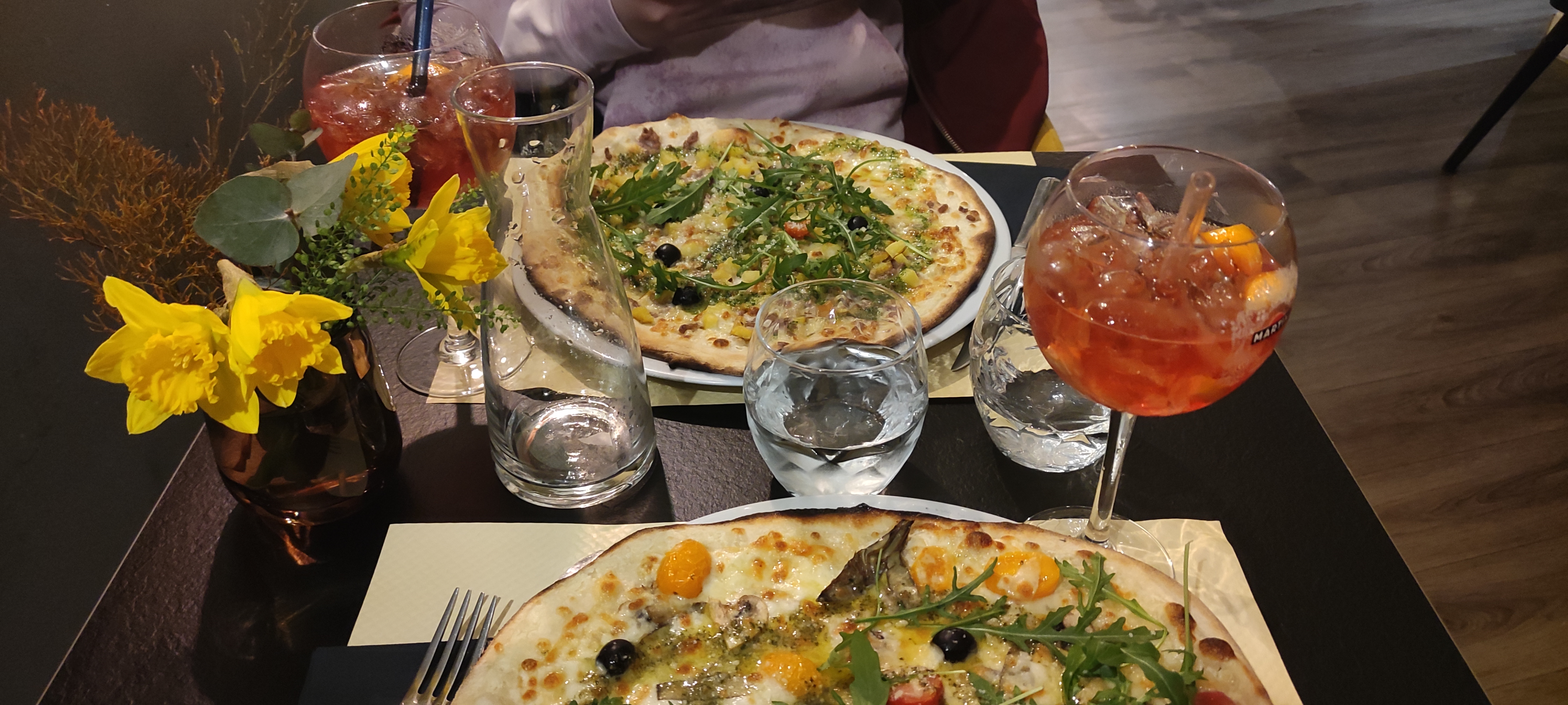 Nous sommes venus manger un soir, nous avons été mis sur une table pour 4 personnes alors qu’on était 5. Se sont trompé de repas, on a eu des pâtes au lieu de pizza et le Prosecco pas pétillant. Sinon la nourriture est bonne.