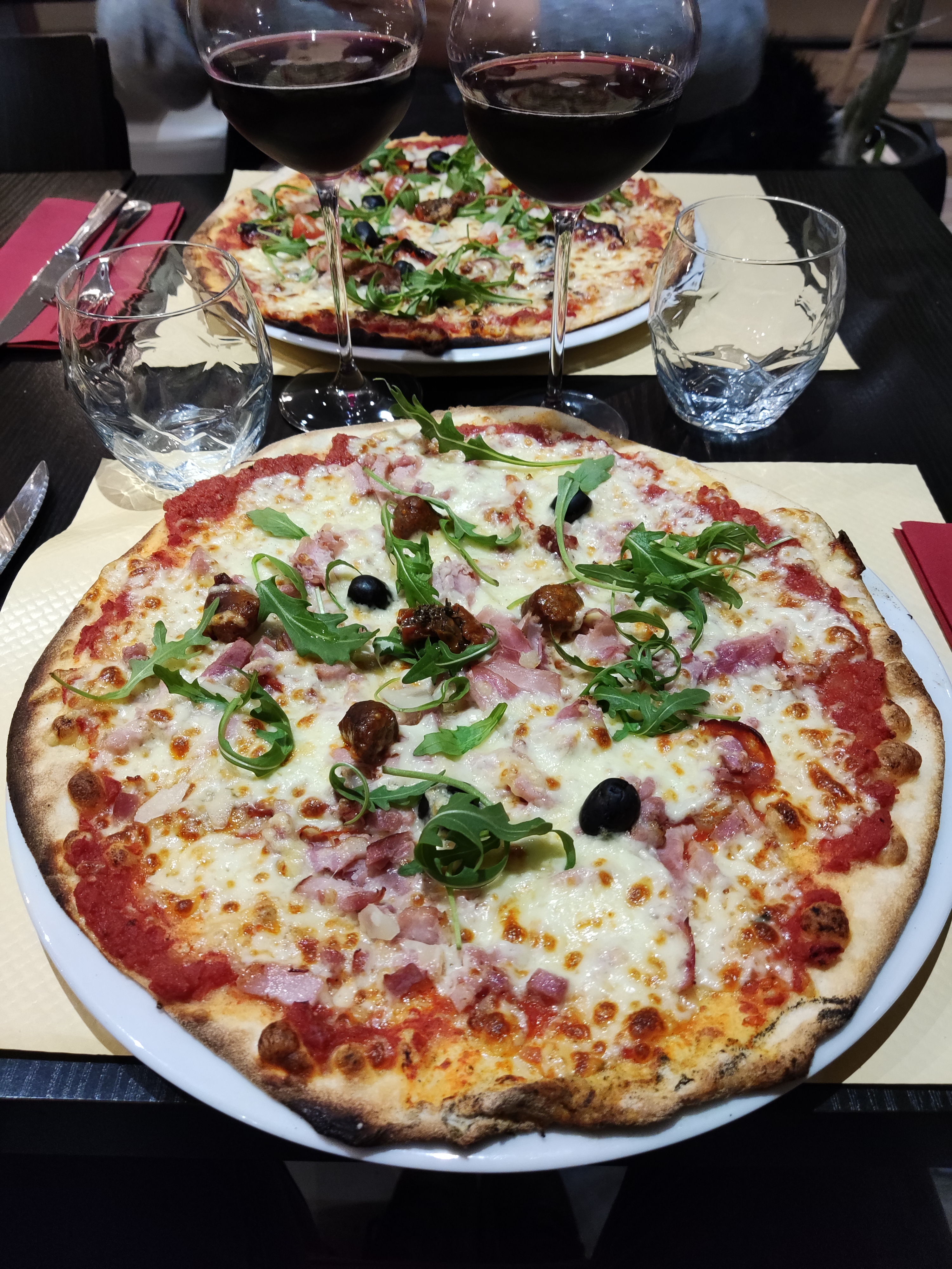 Pizzas bonnes, néanmoins mes amis avaient commandé des pizza ( calabra ) et ont reçu des carbonara ( pates ), pourquoi pas, néanmoins un geste commercial aurait ete le bienvenu, Pinte de Blonde et Prosecco sans bulle, un peu étonnant. Tiramisu bon par ailleurs