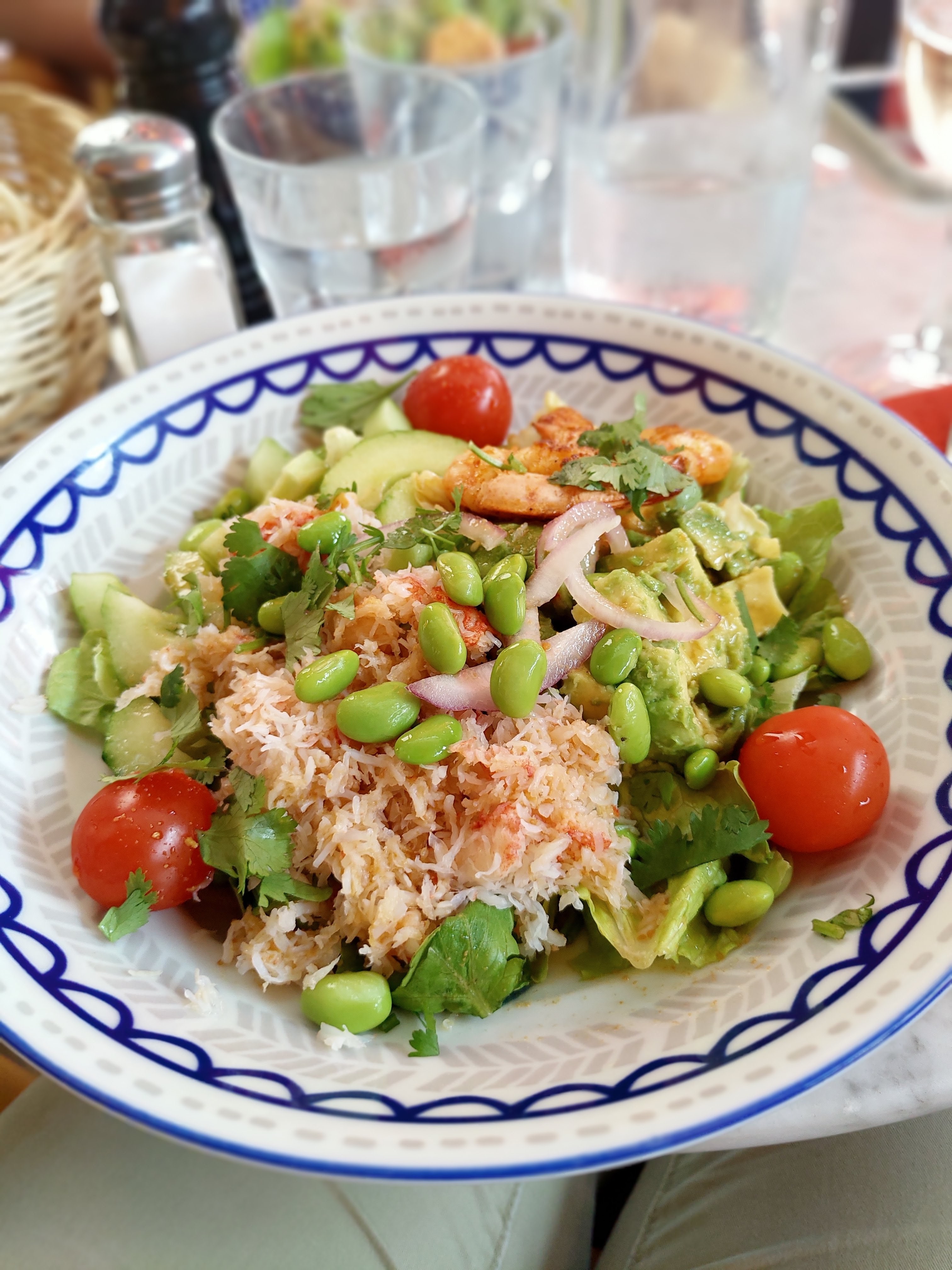 Bof, cuisine ordinaire, sans relief, salade fade avec une vinaigrette sans doute pas faite maison, un verre de vin blanc sauvignon sans goût, comme dilué...