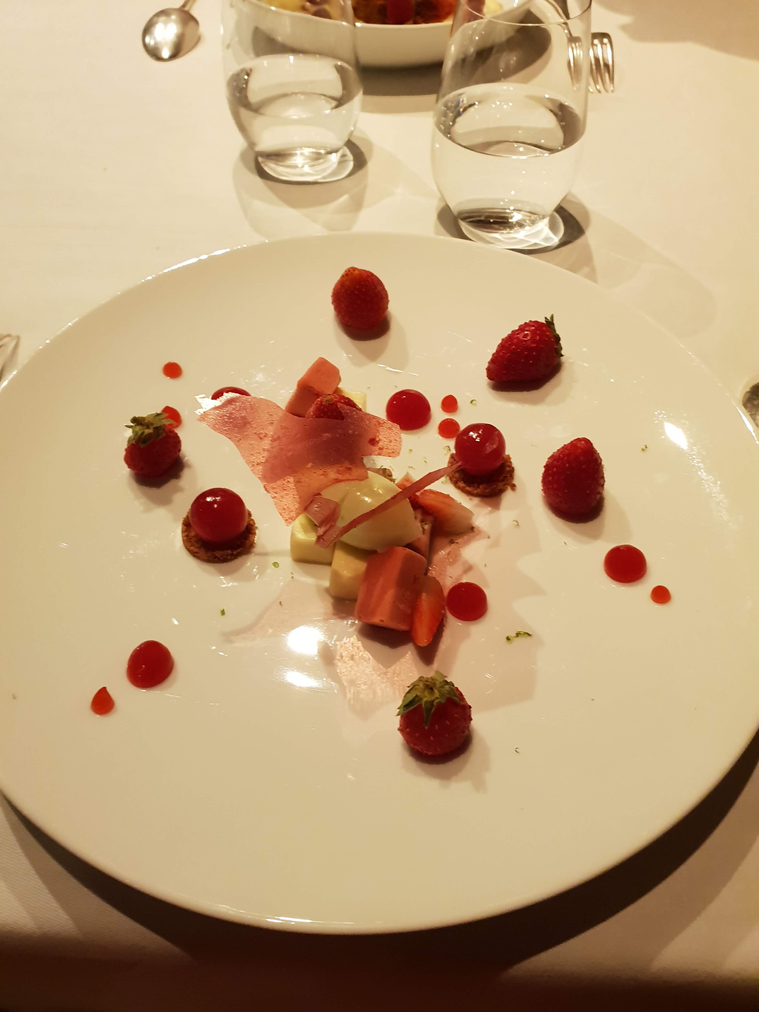 Un décor bucolique,une terrasse agréable,un service professionnel La cuisine est inventive : Le mignon de veau cuisson rosée parfaite avec la sauce béarnaise homard restera dans ma mémoire La déclinaison dessert autour de la rhubarbe travaillée de 5 ou 6 façons différentes est étonnante ( voir photo) Les petites bouchées début et fin de repas délices des papilles ...******* celle chocolat,crème,cerise Kirch j en reprendrai bien Bravo au cuisinier et à toute l 'équipe