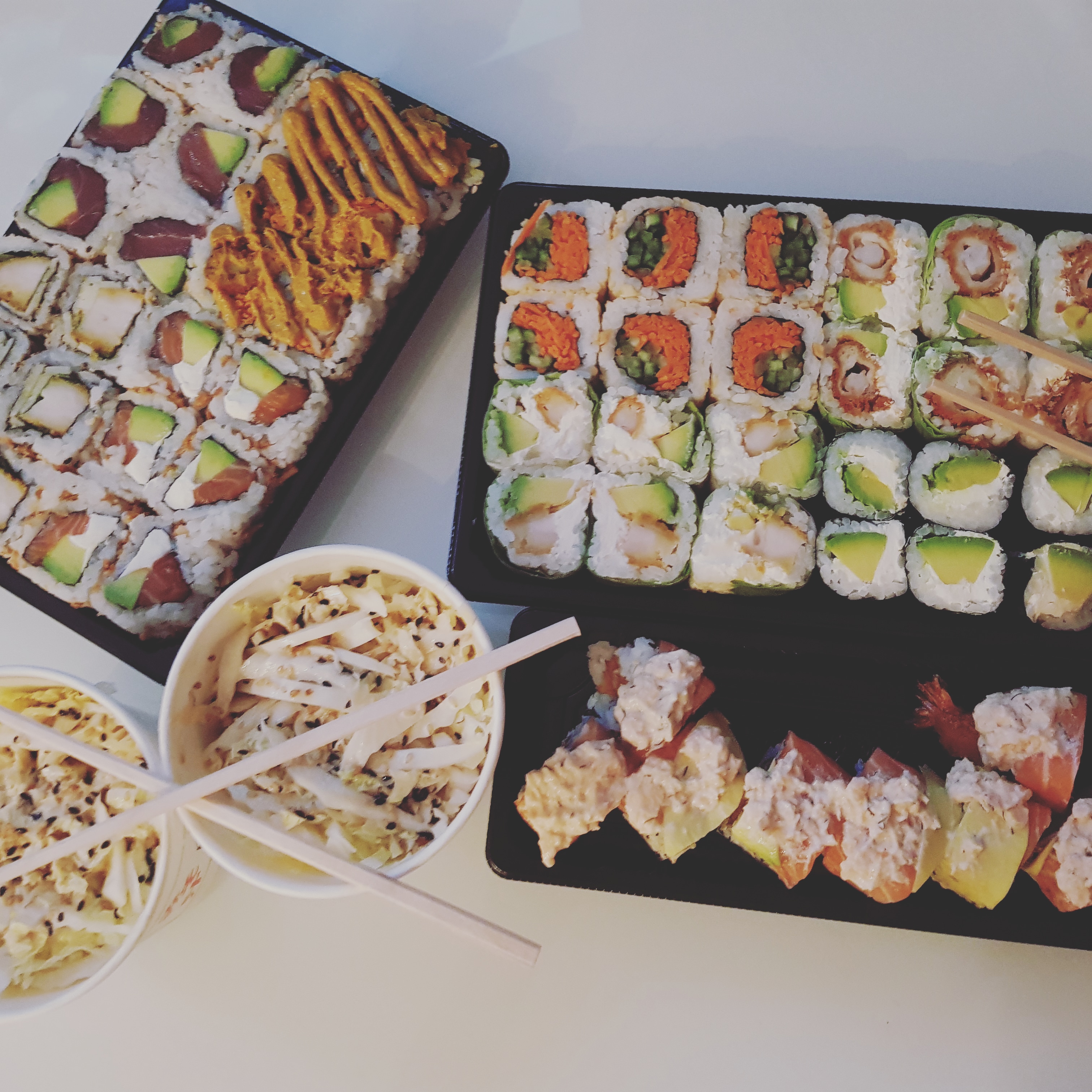 Mes sushis préférés ! Mais la livraison qui prend plus de 2h c'est juste pas possible... Obligée de manger en bossant...c'est pas génial.... En espérant que se soit exceptionnel....