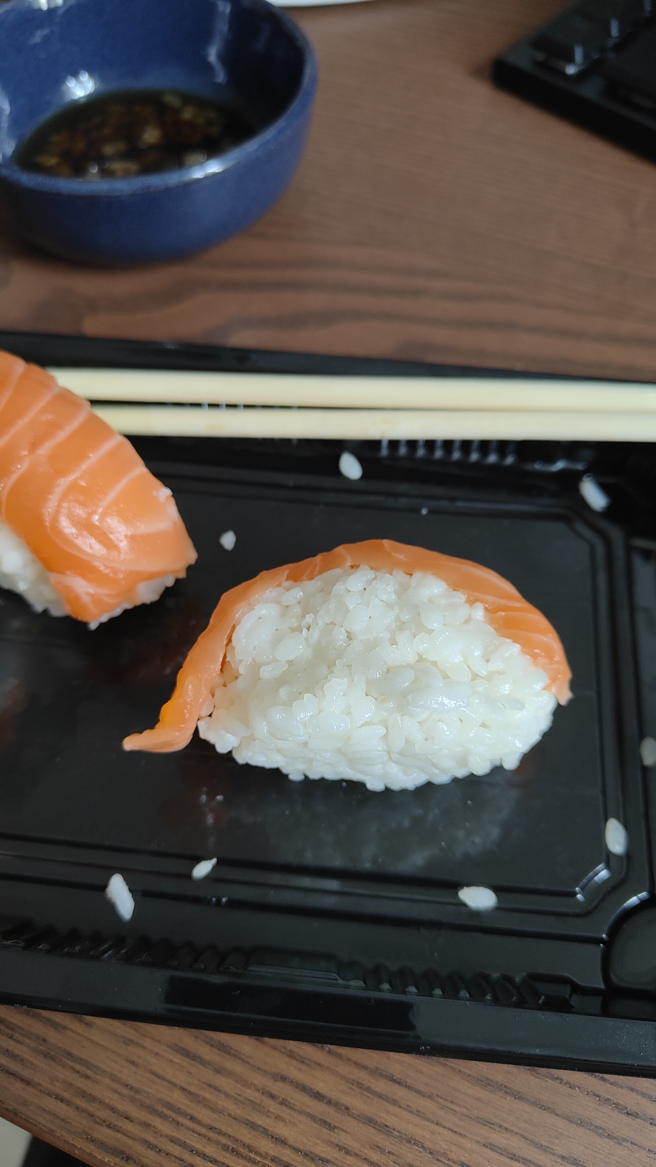 Très décevant.. Ayant goûté à pas mal de sushi sur Marseille, celui la correspondrait au niveau d'un restaurant à volonté comme le Pacifique : 1/5 de poisson pour 4/5 de riz compact, sec et indigeste pour le prix d'un sushi de chaîne classique (côté sushi, sushis shop, etc) Concernant les makis, ils étaient plutôt respectable mais tout aussi bourratif et une économie sur le poisson qui représente encore 1/5 du maki. Je ne m'attendais pas à quelques chose d'exceptionnel, mais sûrement pas à ça. D'après les commentaires la qualité serait autre en restaurant, mais en attendant il y a d'énormes lacunes en livraison. Merci de faire un effort sur la qualité du riz et la quantité, le sushi est censé être fin et généraux en saumon. Cordialement